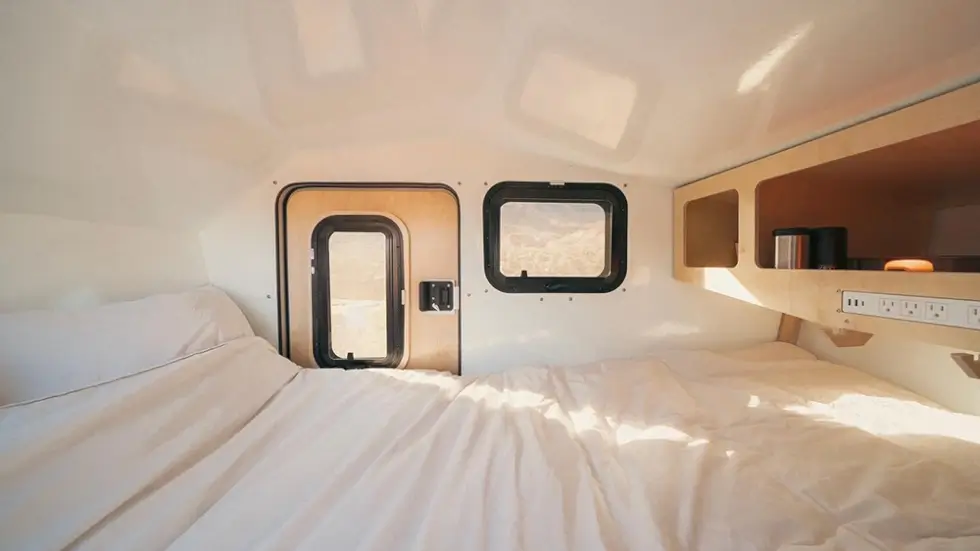 On the outside, it has two side doors with locks and marine-grade door hinges. The Polydrops P19 [Shorty] boasts a smoother shape and is more aerodynamic so it cuts air resistance by 70% compared to traditional trailers. Moreover, it can handle the elements with its all-season rigid insulation and rust-free custom aluminum tube chassis.