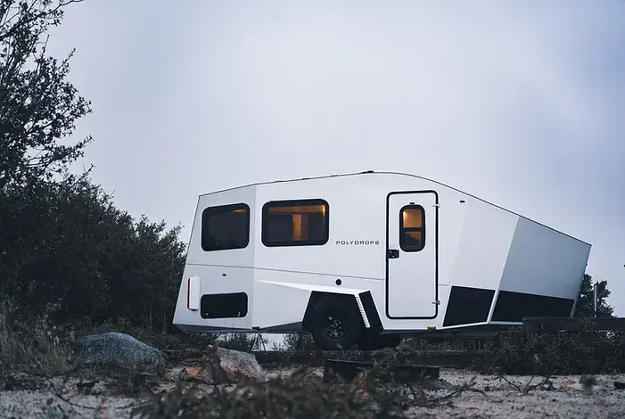 The Polydrops P21 comes equipped with an all-electric system as standard and draws power from built-in 1300W solar panels. It also has a heat pump system, an A/C, and is fully insulated for all-season use.