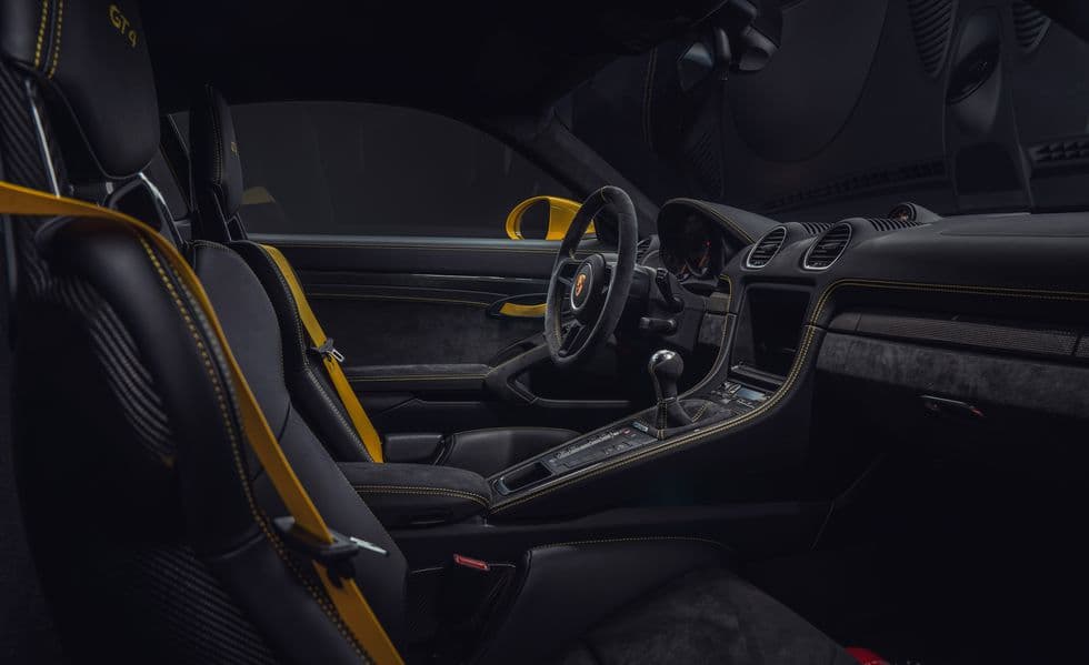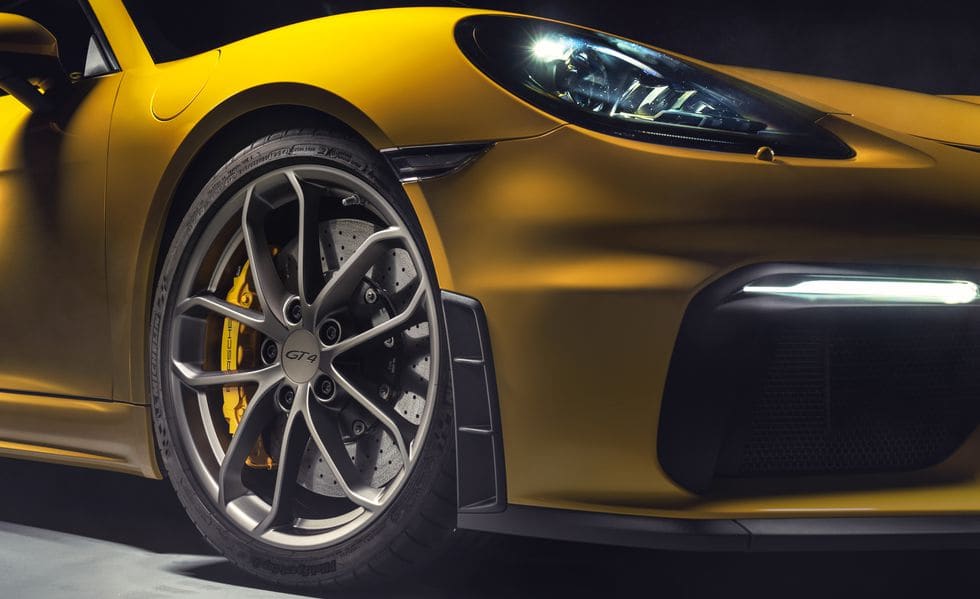 The moment you slip inside the cockpit, the sporty interior and comfortable seating will make you feel at home. Generous usage of premium leather with intricate stitching exudes a luxurious vibe. Step outside to admire the sleek aesthetics of the Porsche 718 Cayman GT4 as it sits on four 20-inch satin platinum wheels. You can likewise have it in Satin Aurum, Satin Black, or Silver.