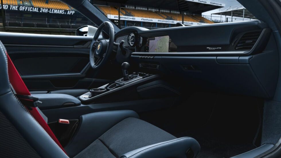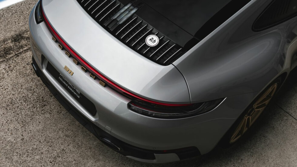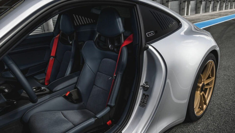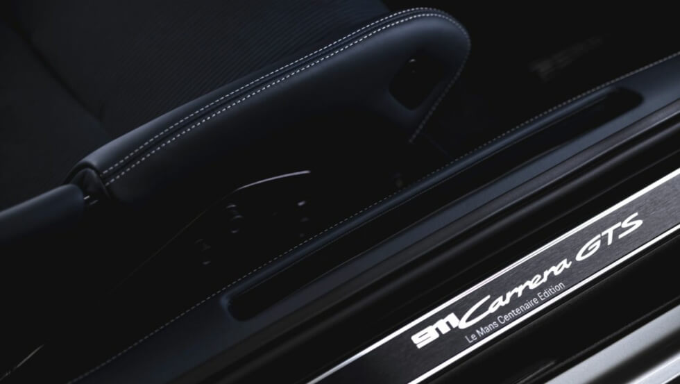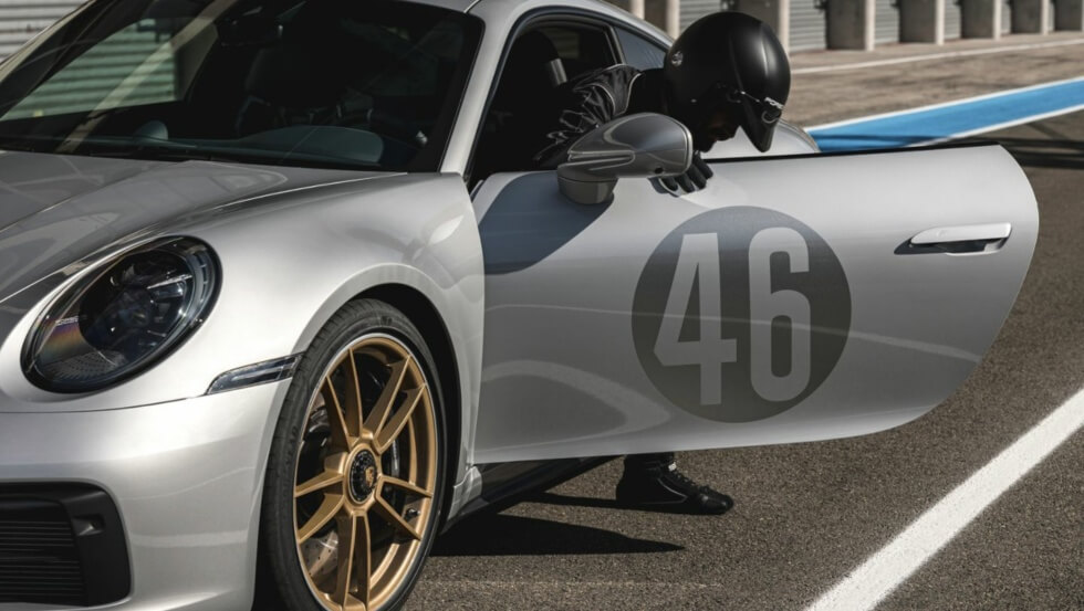 The 911 GTS Le Mans Centenaire Edition flaunts a Le Mans Silver Metallic exterior inspired by the 356 SL. Roundels on each door are marked with the number 46 – another nod to the aforementioned racer’s starting number. Then there are the five double-spoke rims finished in Aurum for an elegant contrast against the body.