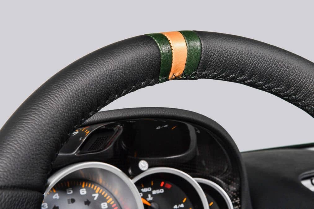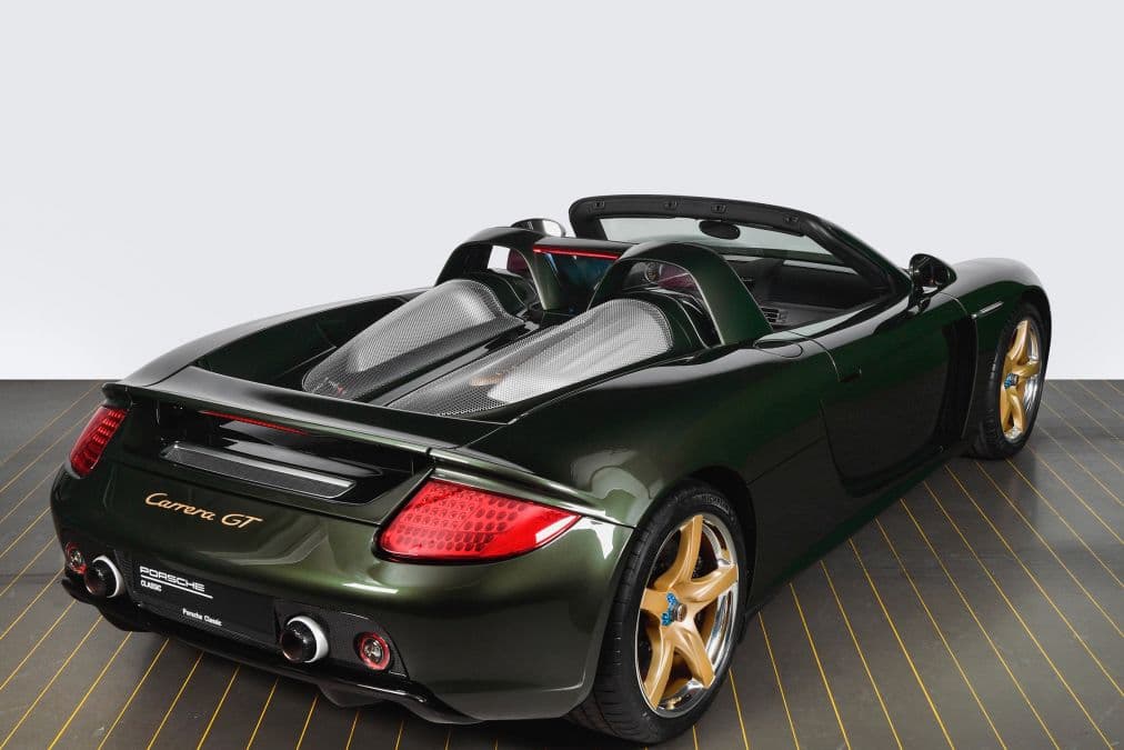 This challenging restoration highlights out the eye-catching design of the Carrera GT, albeit with some subtle difference. It now sports an exclusive Oak Green Metallic coat. This new color was not an available option during its original launch. Other than the eye-catching paintwork, it now wears four bespoke BBS magnesium wheels with an extra touch.