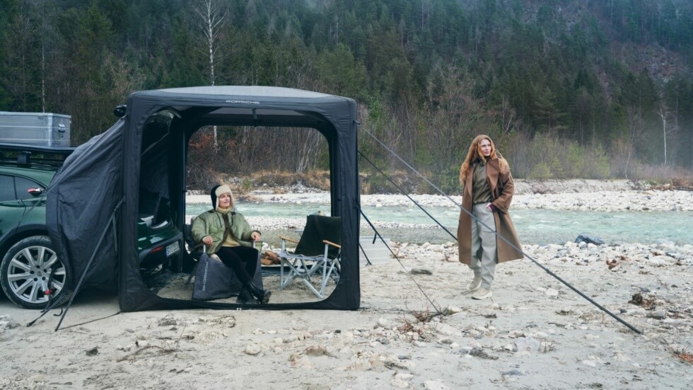 After testing the waters with its roof tent in 2022, Porsche is ready for larger groups seeking experiences amidst nature. For larger groups eager for an excursion, the Pavilion can provide a cozy shelter for up to six adults. The basic bundle likewise includes the vehicle connection tunnel, side wall with window, and groundsheet.