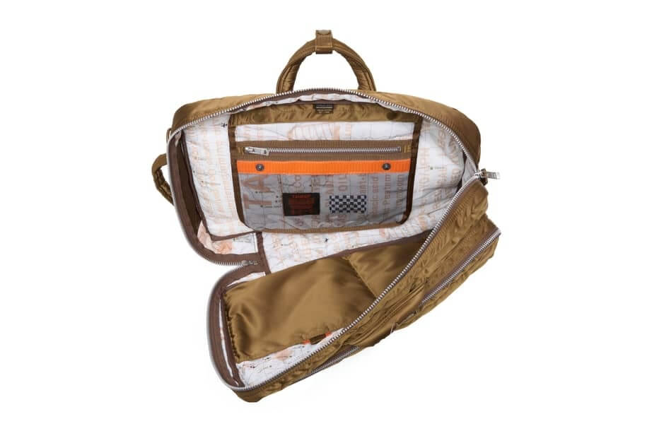Meanwhile, the interior is a contrasting vibrant color featuring Yoshida & Co.’s original “Traveling Map” lining. The print pays homage to the brand’s anniversary and usually features in multiple special releases of the past year.