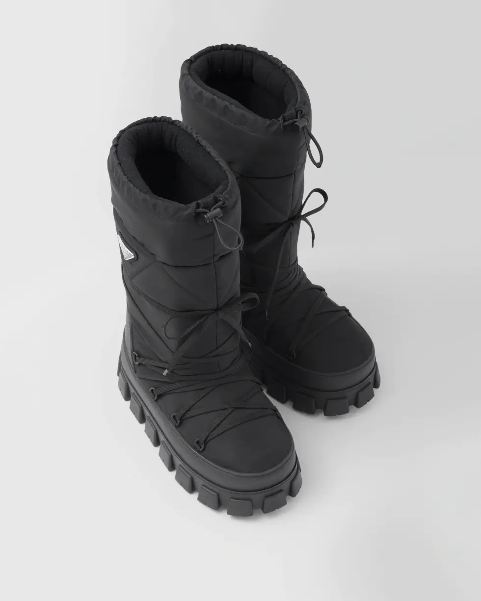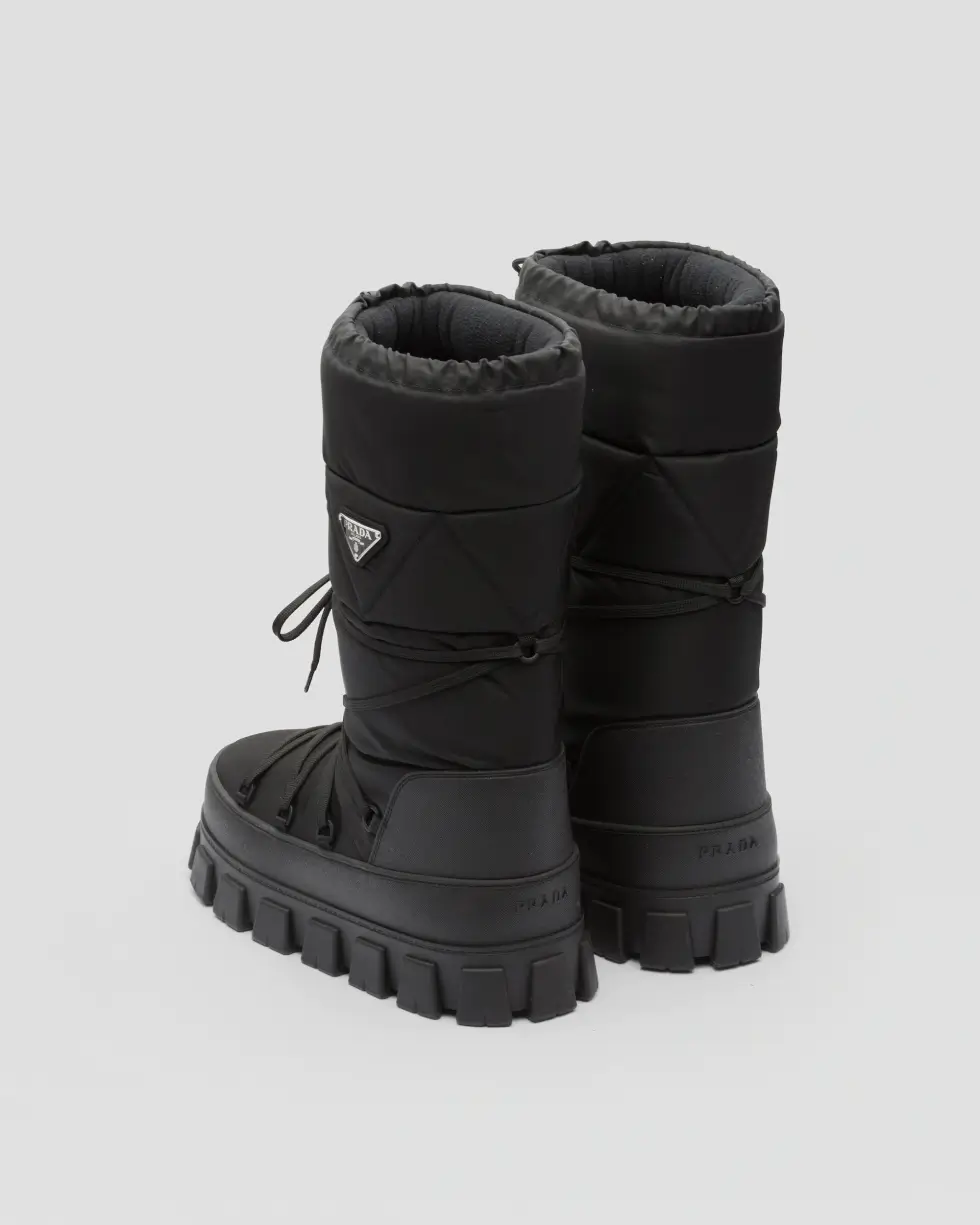 Prada’s Gabardine Après Ski Boots are available in two options: 20 cm and 32 cm bootleg variations. They also come with a hefty price tag of $1370 USD and $1590 USD, respectively.
