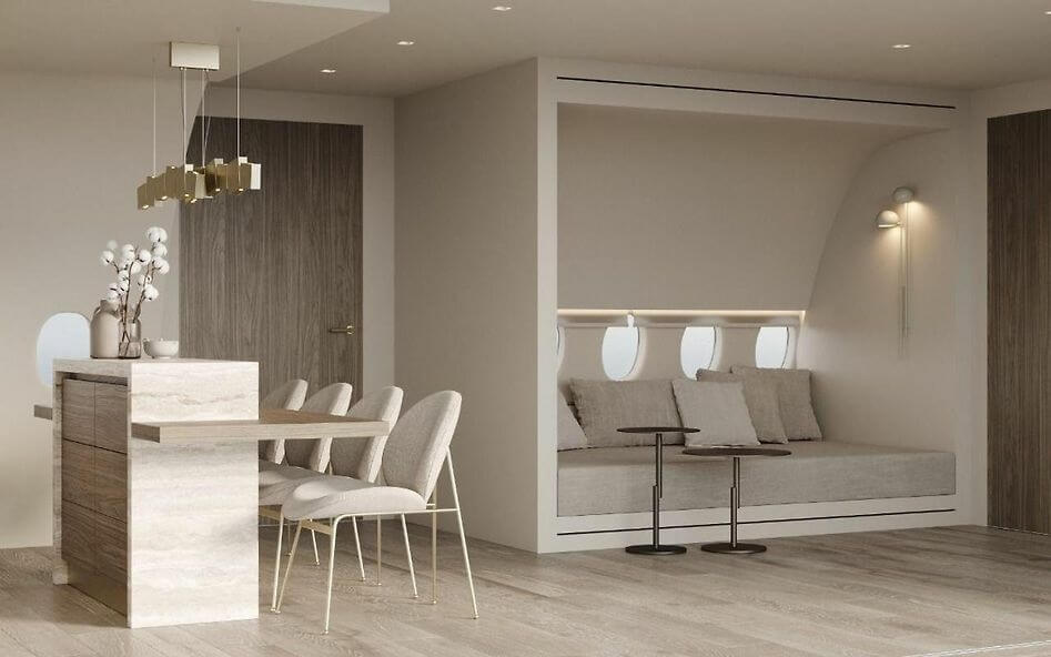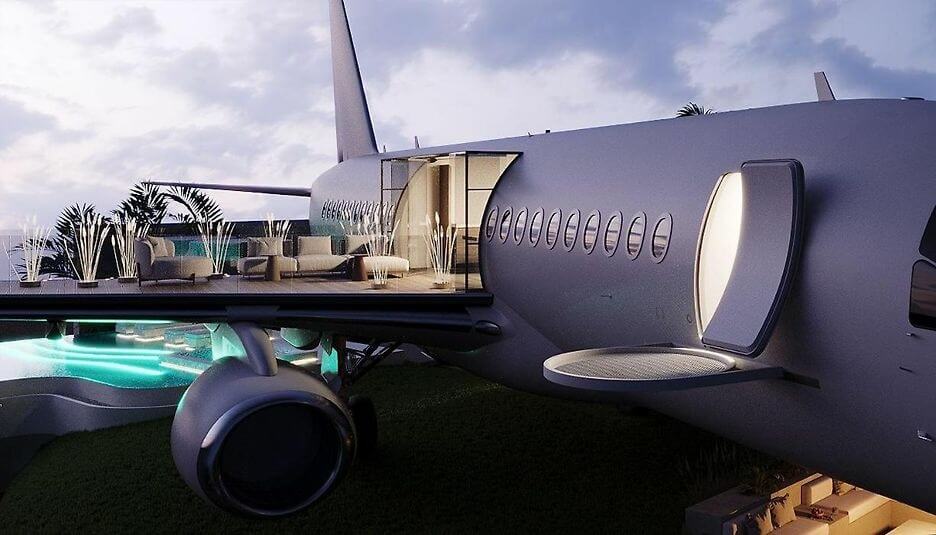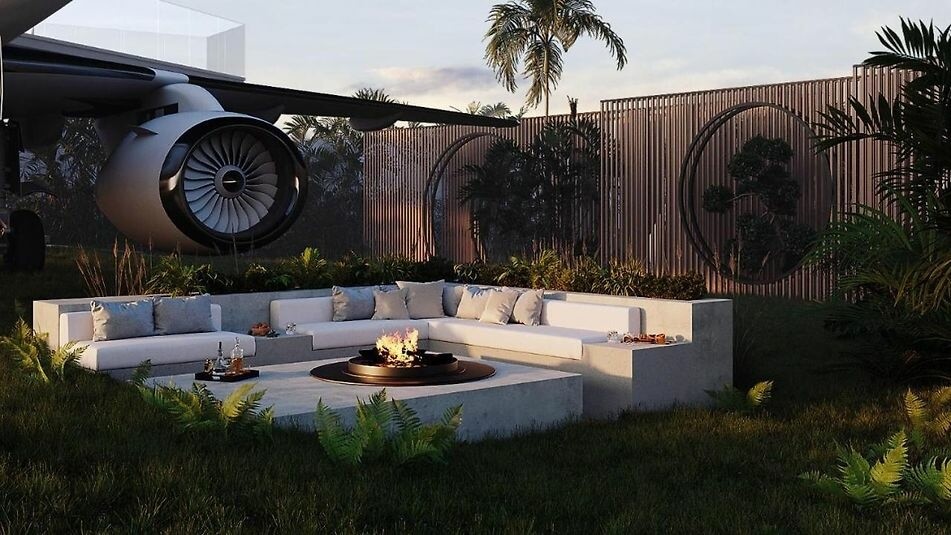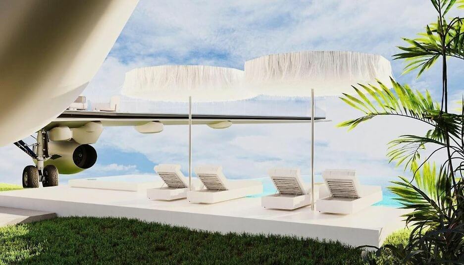 Moreover, this cliffside oasis has a pool that overlooks ocean views, a circular stone tub with water views, and a deck with a fire pit. The former cockpit is now a modern main bathroom and the business class is converted into the kitchen, dining, and living area. One of the wings now serves as a floating terrace where guests can soak in wonderful views next to the infinity pool. Meanwhile, the other wing is now a peaceful garden. Private Jet Villa even comes with its own helipad for a chopper to land.
