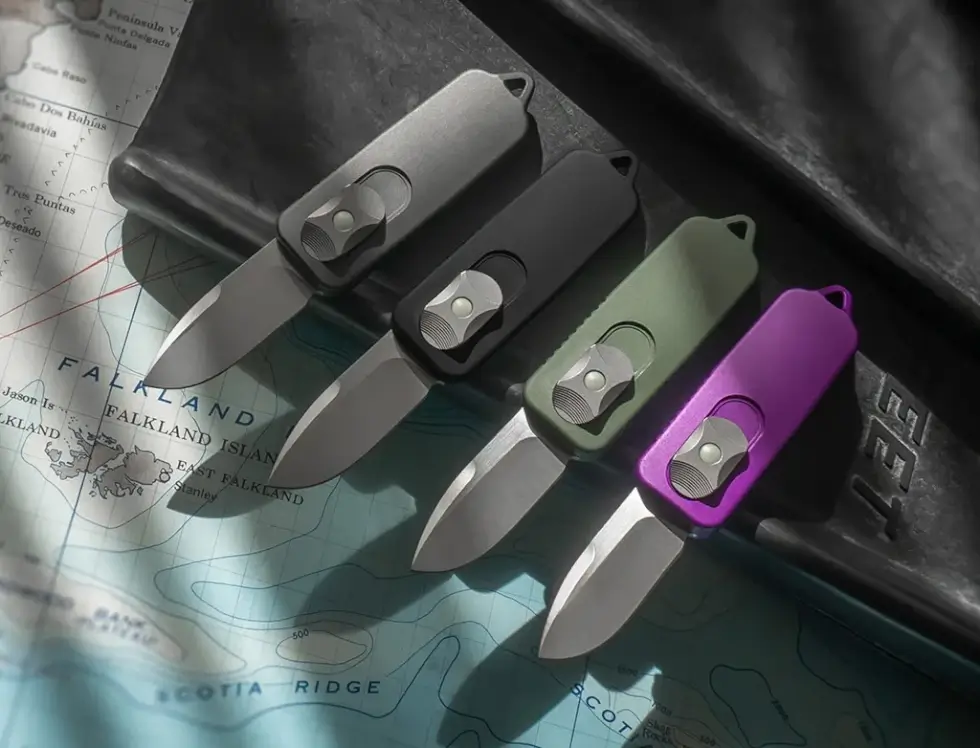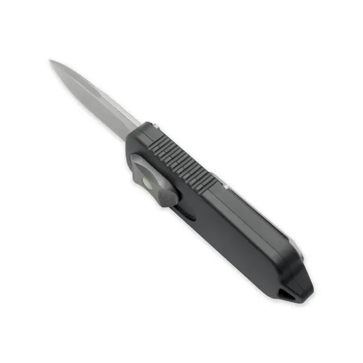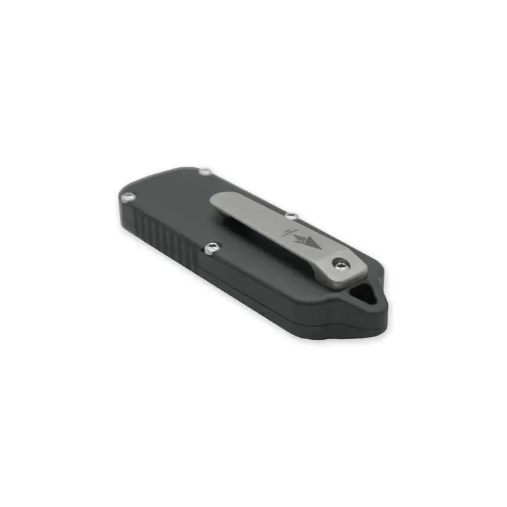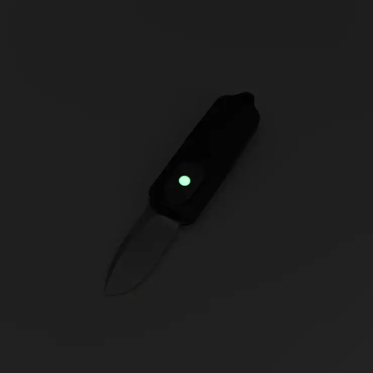 The CAS OTF also has a titanium slider with Hyperglow glow dot inlay. This knife offers a 1.9″ spear point blade in a dual-tone satin and matte finish and comes at an overall length of just 3.03″ and weight of 1.9oz (53.9g). It makes a reliable blade given its strong material, compact and minimalist silhouette.