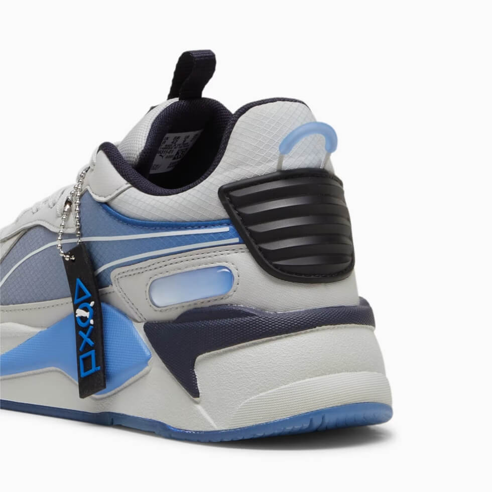 A flat lacing system secures the Puma x PlayStation RS-X to your foot which is nestled comfortably within courtesy of the mesh lining and sockliner. The sneakers feature an RS technology midsole. Finally, the Puma and PlayStation co-branding also appears on the tongue tag, as well as on a gradient backdrop beneath the translucent rubber outsole.