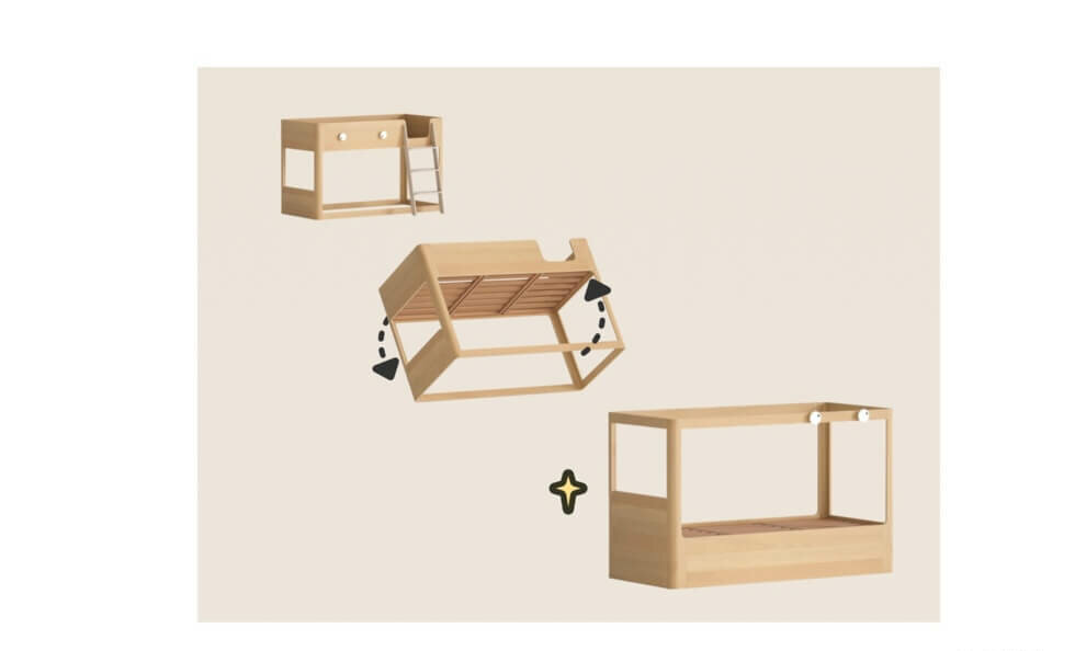 Removing the ladder and turning the bed over changes their positions. The bottom now acts as the main or basic bed while the top serves as a space to hang a curtain for privacy. Aside from its functionality, this bed also looks beautiful and is durable.