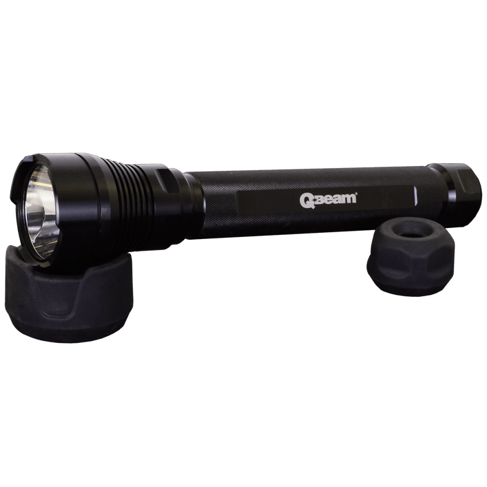 The Q-Beam Blue Max Midnight flashlight runs on three D alkaline batteries and works with a tail cap switch. It offers three light modes including strobe and high and low beam and provides illumination for an amazing 18 hours and a max beam distance of 420 meters. That’s more than enough to shine a dark path in the distance. Despite the lengthy runtime, the LED bulbs do not overheat so