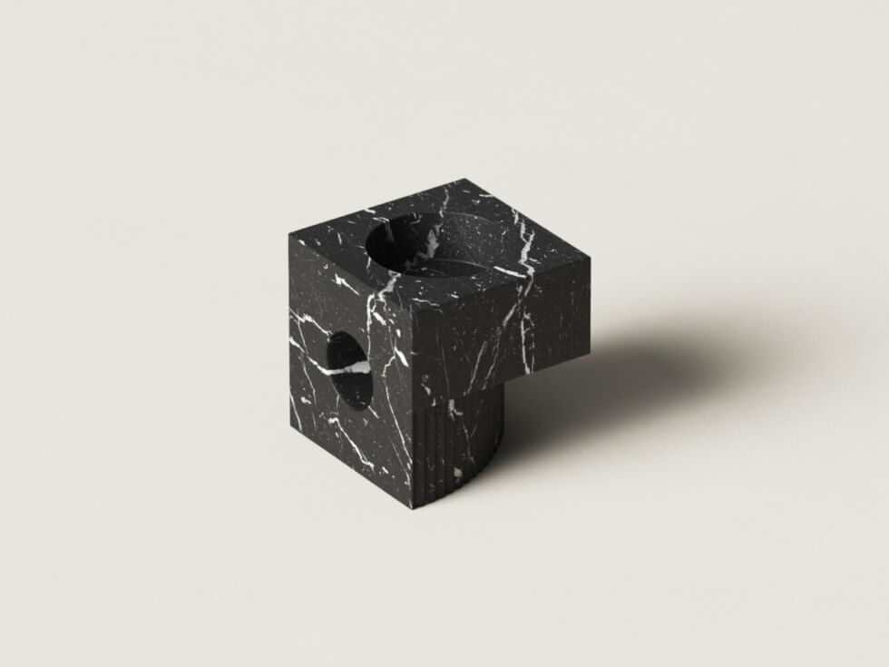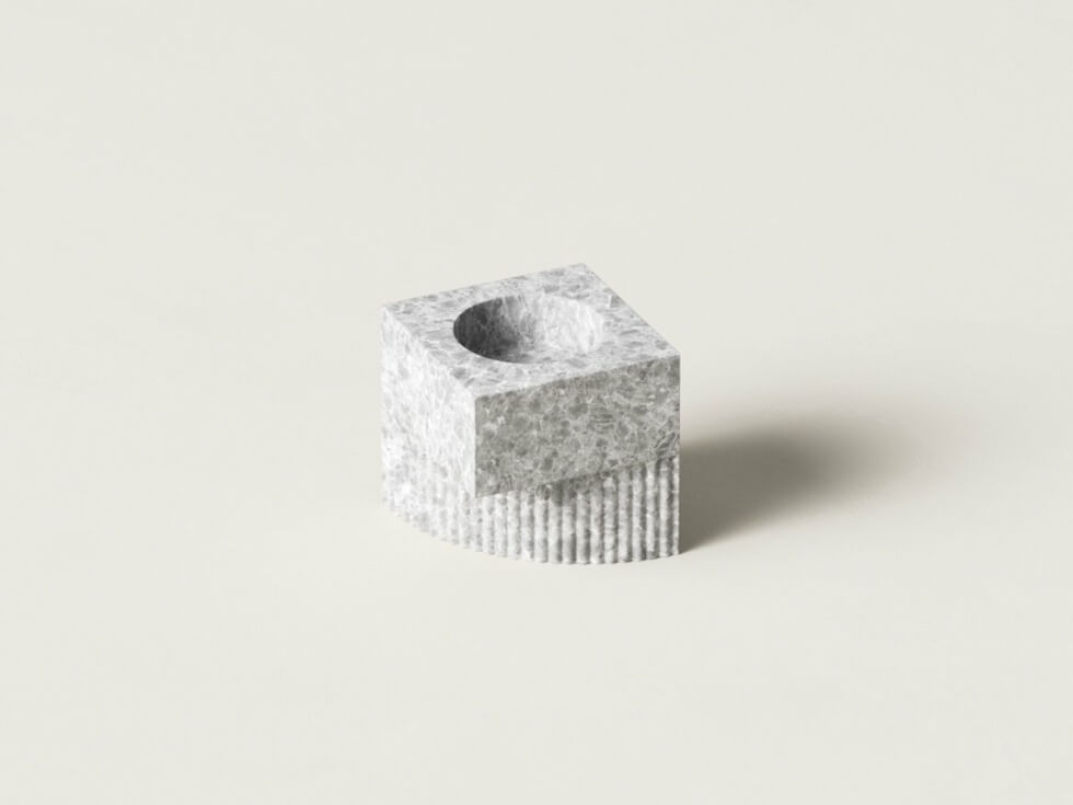 The QUB Candlestick concept takes an artistic approach with its geometric form carved from natural stone. It serves both style and function: as a decorative piece when displayed as is or as a sturdy base for a candle to stand on. It even works as a paperweight.