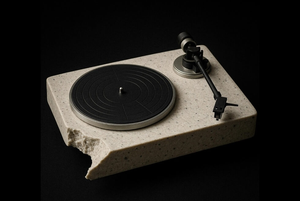 “This future-forward turntable revives the attitude of Ron Arad’s 1984 concrete icon. Back then, it was brutalist concrete. Today it’s waste transformed into a new kind of permanence. 41 years on, the apocalyptic turntable is back. Same spirit. New material. Full circle,” writes its creator.