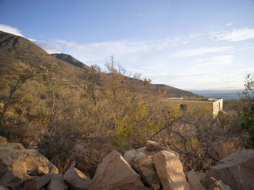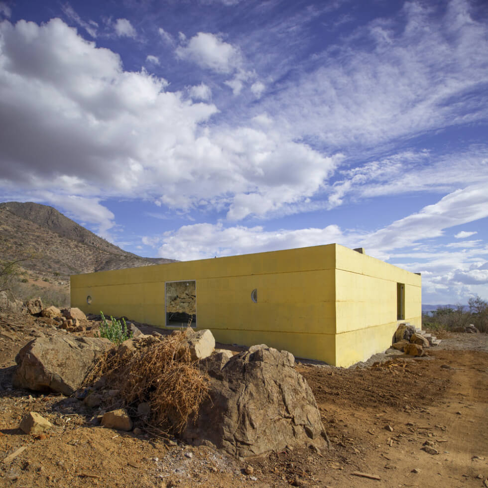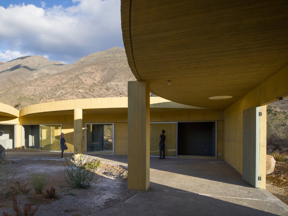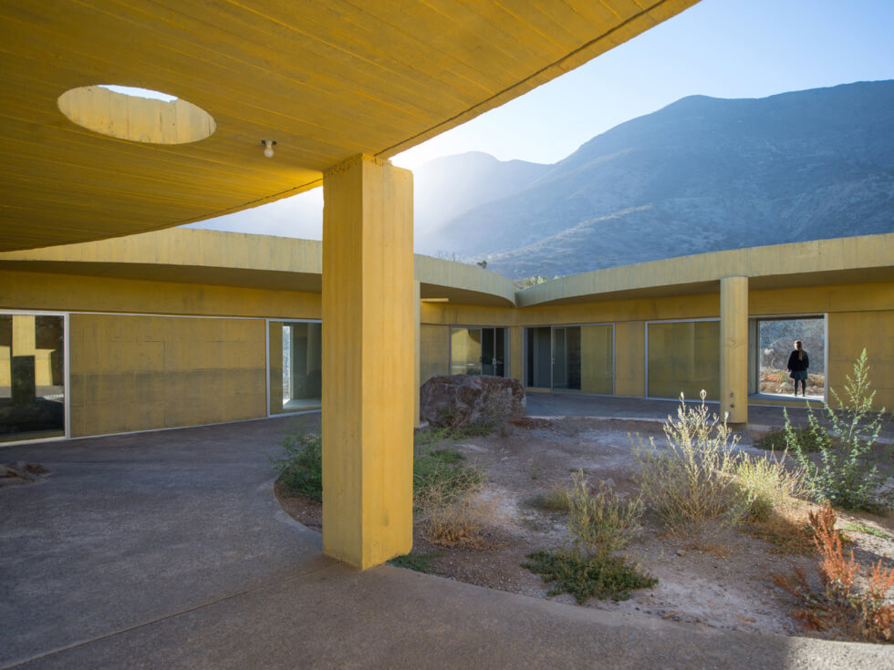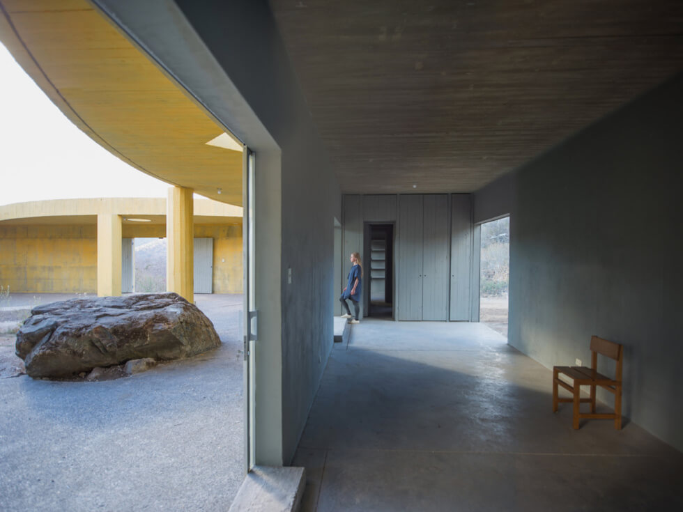 Furthermore, the layout of its interiors is “a subtle compensation in size and proportion,” according to the architect. The way the structure is framed by mountains of broken boulders, stones, and plants makes it seem out of place.