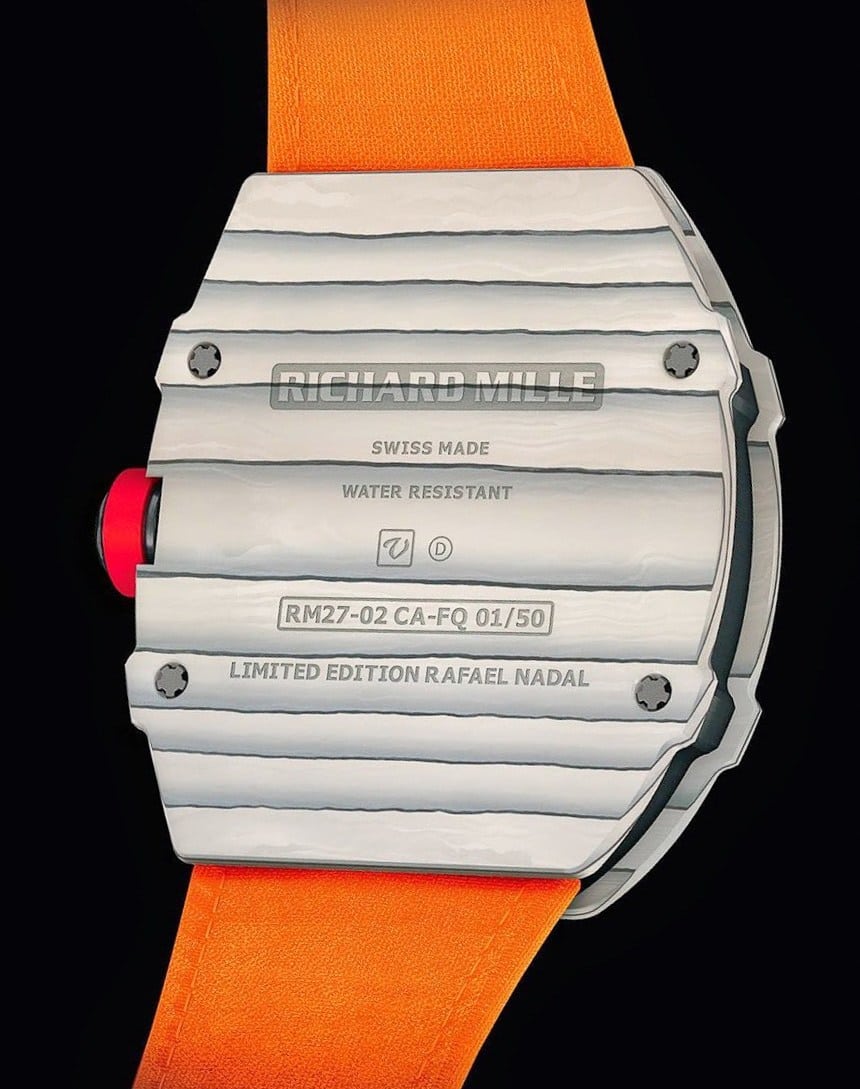 Grade 5 titanium was also used for the 12 spline screws that keep the watch together, holding the RM27-02 manual winding tourbillon movement inside. Over the skeletonized insides there is an anti-glare sapphire crystal that ensures perfect visibility and protection. The case dimensions are 29.30 mm x 29.60 mm x 7.10 mm, which makes it not too bulky, yet not inconspicuous either. The wearer can bet on unfaltering accuracy and a power reserve of up to 70 hours, but keep in mind that only 50 units will ever hit the expensive watch market.