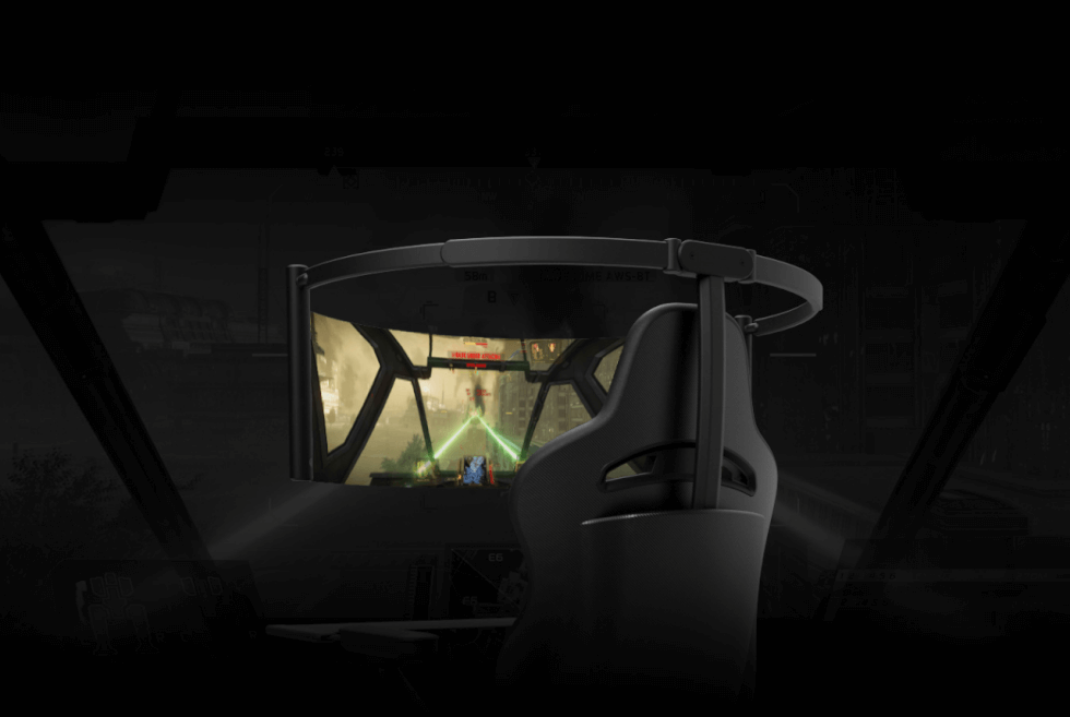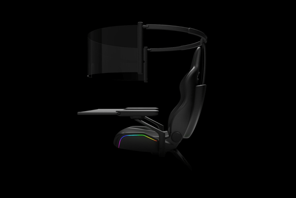 Aside from the RGB strip on the bucket seat and legs, Razer is turning the Project Brooklyn into an all-in-one entertainment platform. It’s doing so by adding an automated mechanism that extends over to unroll a 60-inch flexible OLED panel. Now you have a panoramic gaming-grade display which is actually possible with the technology available today.