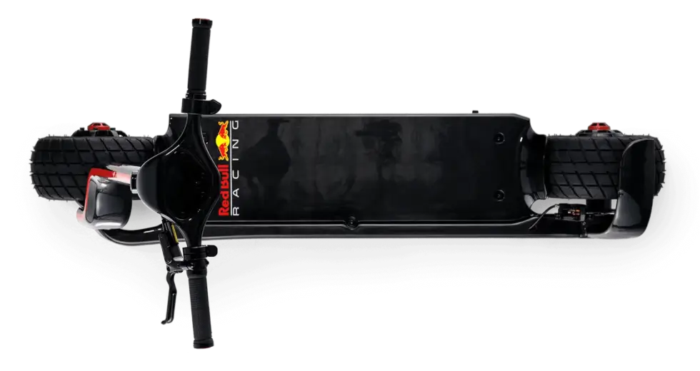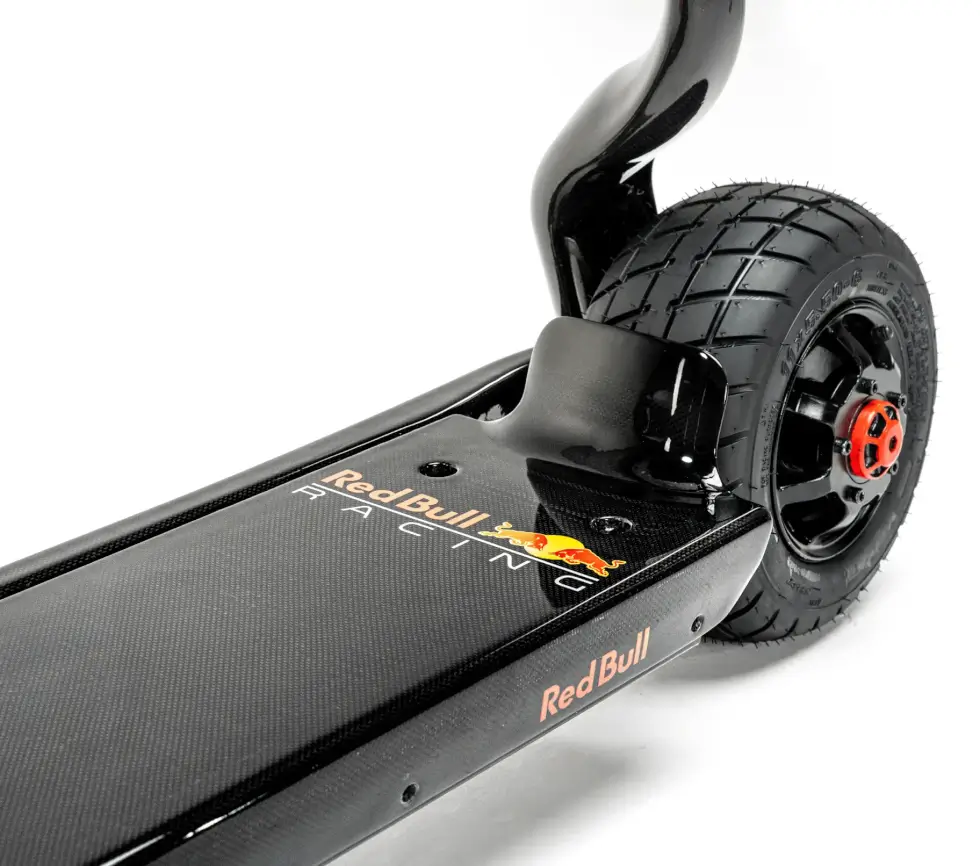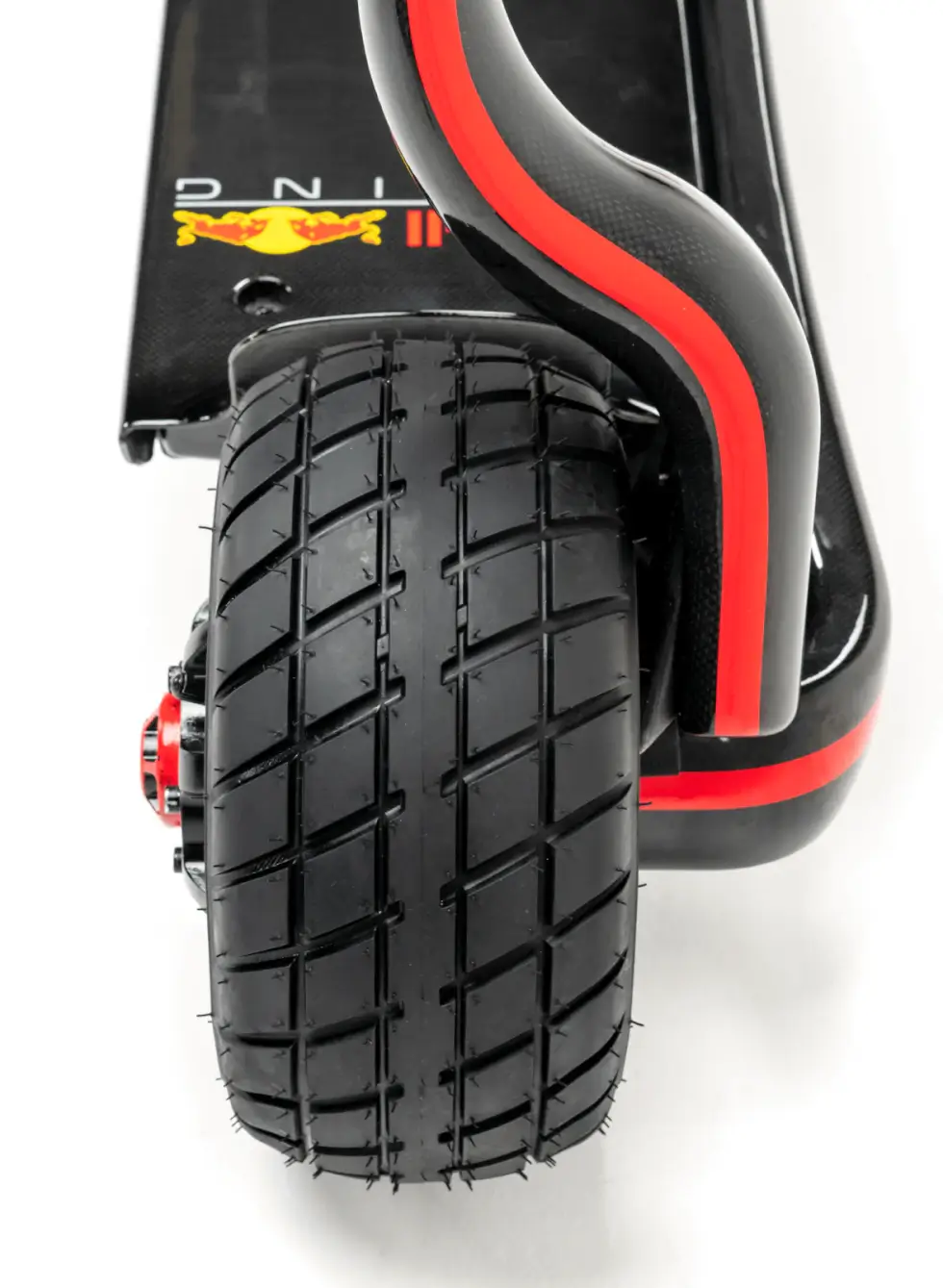 The extraordinary strength-to-weight properties of carbon fiber tell us the RBS#01 will gladly welcome any challenge. Red Bull likewise outfits the large-diameter wheels with soft compound intermediate tires for superior traction on any type of surface. Finally, four-piston hydraulic disc brakes promise reliable stopping power.