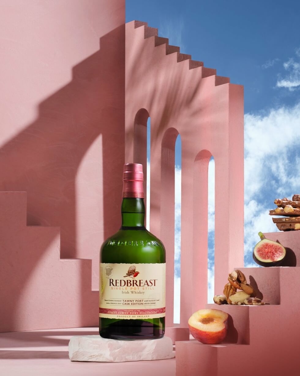 As for the tasting notes, there are aromas of dried cherry, caramelized almonds, pot still spices, buttered pastry, praline, seasoned oak, and floral honey. A sip of the Tawny Port Cask Edition reveals toasted oak, orange marmalade, fried fig, fresh plums, hazelnut, chocolates, and salted caramel. Redbreast states the Irish whiskey’s essences have a long finish and leave your mouth with hints of tawny seasoned oak.
