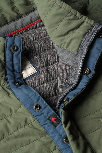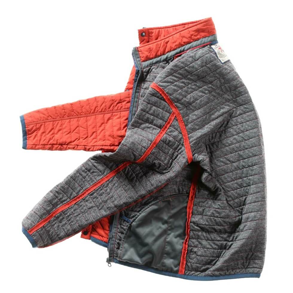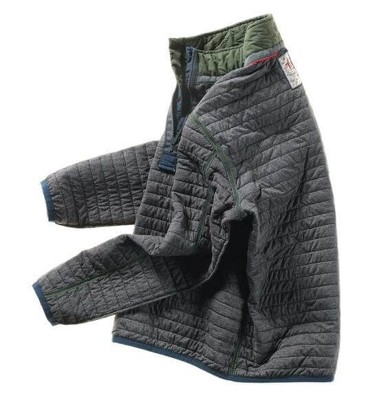 Meanwhile, the lining of the Relwen Windzip Popover is 9% polyester, 5% spandex, end-on-end stripe peached jersey, and 100% recycled polyester for the insulation filled 60 grams with 1″ horizontal quilting through and through. To ensure a secure wrap, it features a dual-closure snap and molded zip placket reinforced with blue nylon Taslan facing. To keep the cold off from neck to bottom, it also has a stand-up collar of double-layer quilted self-shelf material.