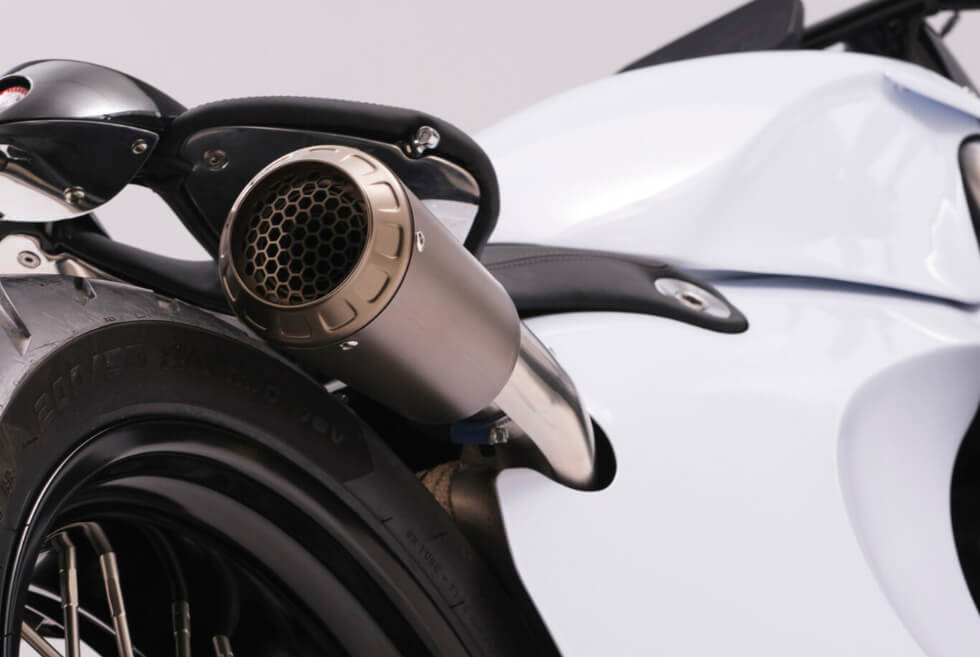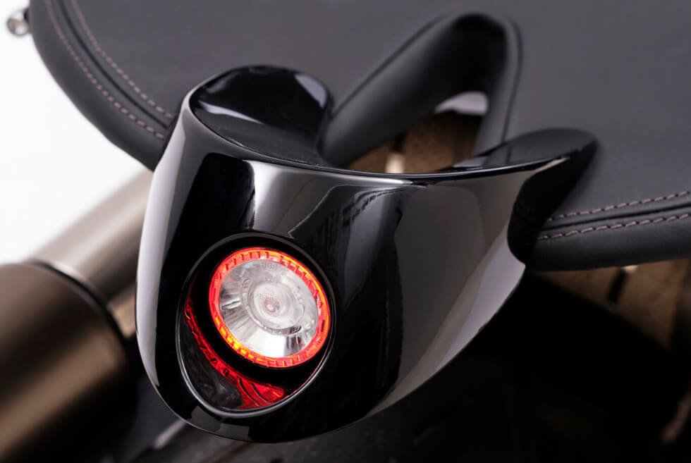 We also love the front suspension covers, which have been 3D printed with remarkable precision. There’s also a stacked pair of round headlights and a new bobber-style seat with an integrated taillight. The “Reimagined” sits on a pair of spoked Jonich Wheels and boasts titanium Akrapovič mufflers sourced from a Ducati Panigale Superleggera.