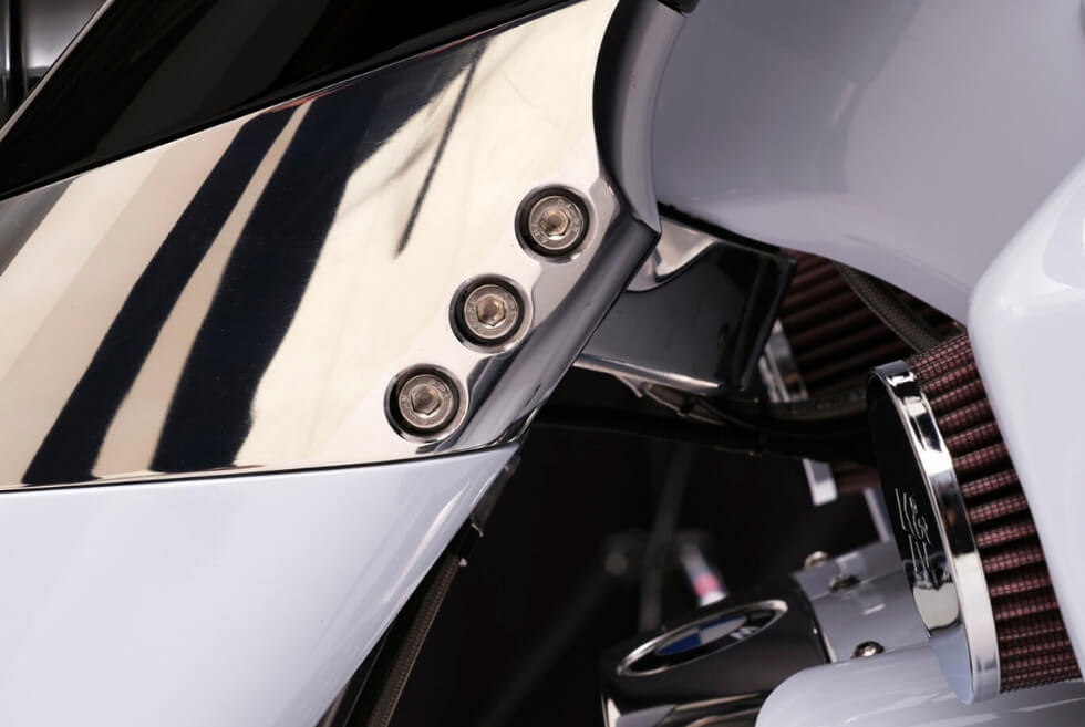 BMW’s variable camshaft control (ShiftCam) technology will ensure riders can squeeze out everything the power plant can offer. Renard Speed Shop endows the R 1250 R with a new fuel tank and body panels handmade from aluminum. Next are the triple tree fork and front grille which were CNC-milled from solid aluminum blocks.