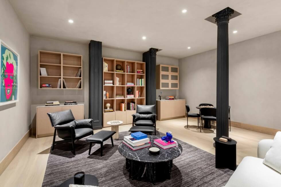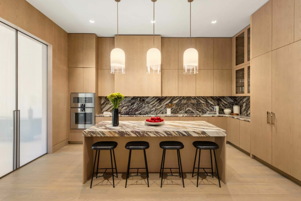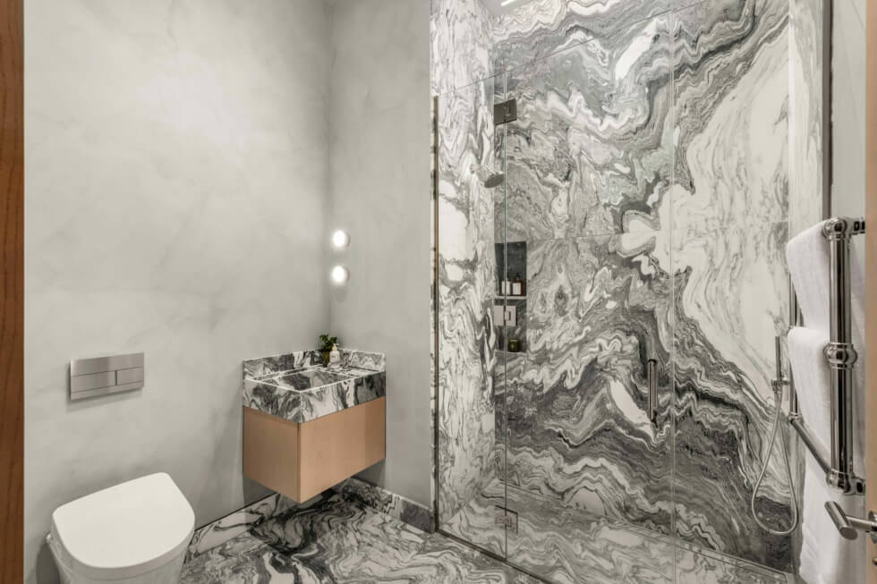 The unit spans a total of 4,357 square feet with a 3,984-square-foot interior and a 373-square-foot space allocated for storage. Owners get three bedrooms, four bathrooms, and a den. The volumes within flaunt a stylish contemporary motif courtesy of interior designer Paris Forino.