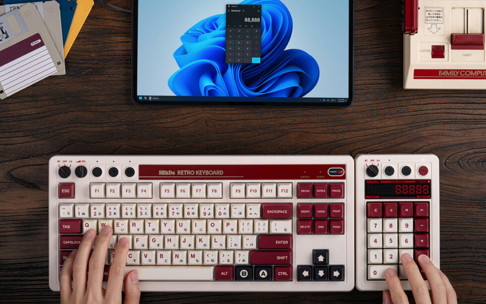 A 1,000 mAh rechargeable battery lasts up to 160 hours. 8BitDo says it is natively compatible with the latest Android and Windows operating systems. The Retro 18 Mechanical Numpad is equipped with Kailh Box White switches V2 with a hot-swappable PCB. It’s available in four cosmetic variations: Fami Edition, C64 Edition, M Edition, and N Edition.