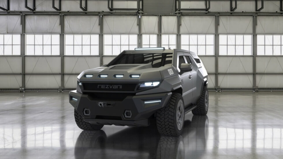 Rezvani outfits the Vengeance with bulletproof armor and glass. Even the undercarriage is reinforced to withstand explosives. Military-grade run-flat tires further benefit from the wheel band technology to keep them in place. Magnetic deadbolts on all doors and electrified handles ensure nobody attempts to access the cabin.
