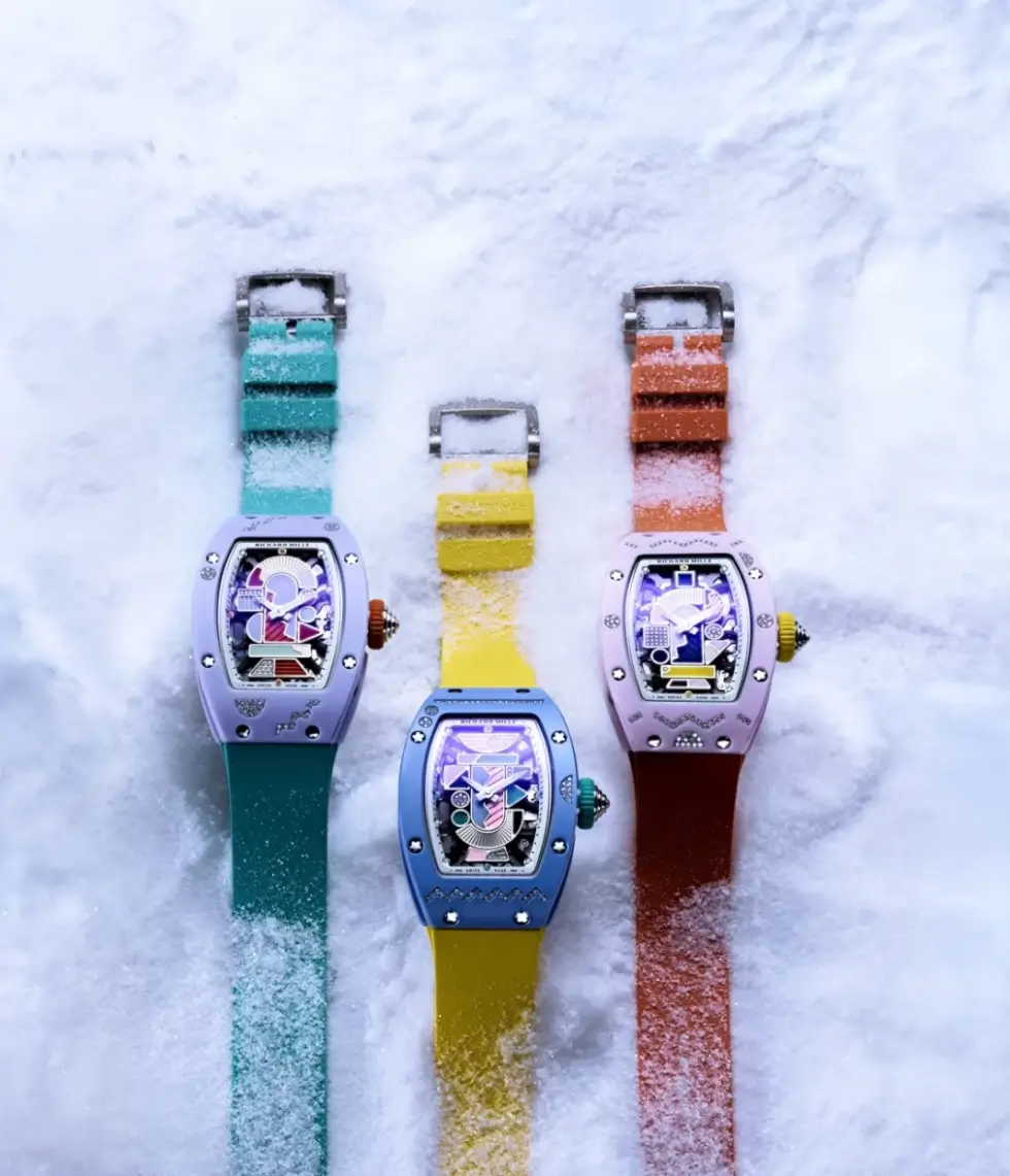 “The trio is the pinnacle of an aesthetic and technical exploration into colour and form that first began in 2021. True to the spirit of previous editions, these three new RM 07-01 timepieces, each limited to 50 pieces, conclude a unique dialogue between bold modernity and watchmaking tradition, now signed with the brilliance of gem-setting,” reads the official introduction.