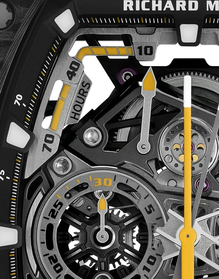 You’re looking at a 42.9 mm x 17.1 mm x 51.2 mm tonneau case with a subtle curvature. These allow the RM 43-01 to comfortably and securely wrap around the wrist courtesy of its rubber strap with a double-folding titanium clasp system. Framed within is an openwork dial crafted out of grade 5 titanium and carbon TPT. This embodies weight-savings and structural rigidity.