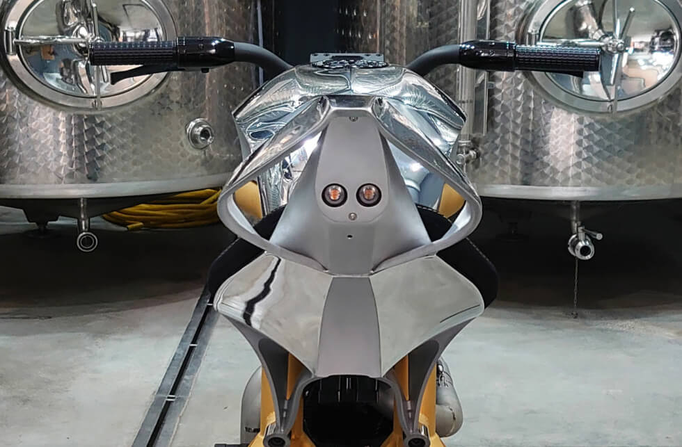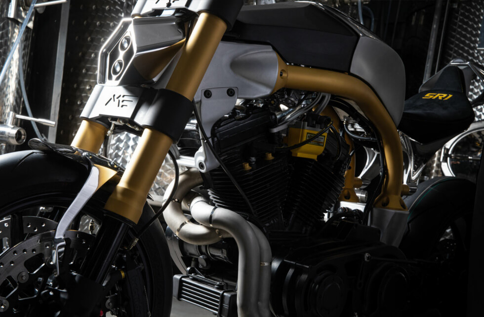 It’s easy to see why the S1 MMC won “Best in Show” as the garage goes for an avant-garde visuals. This takes a sporty donor bike and turns it into a moto like no other. True to the shop’s name, father and son mechanical mavens, Michel and Jimmy Messina understand what it takes to stand out.