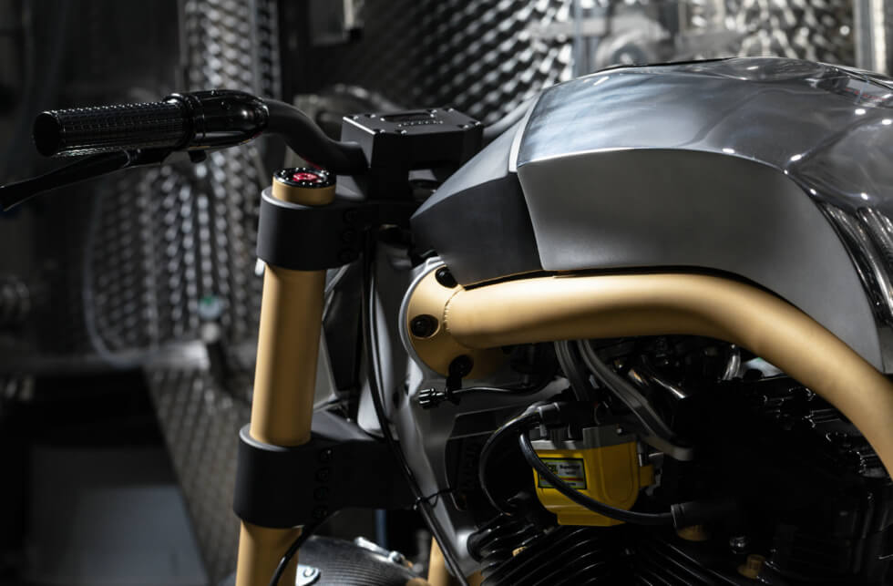 To allow two entirely different components to play nicely takes motorcycle know-how and some ingenuity. The S1 MMC makes the magic happen and throws in even more extras. The café racer aesthetic includes a custom tank with curves to accommodate the rider’s natural leg contour.