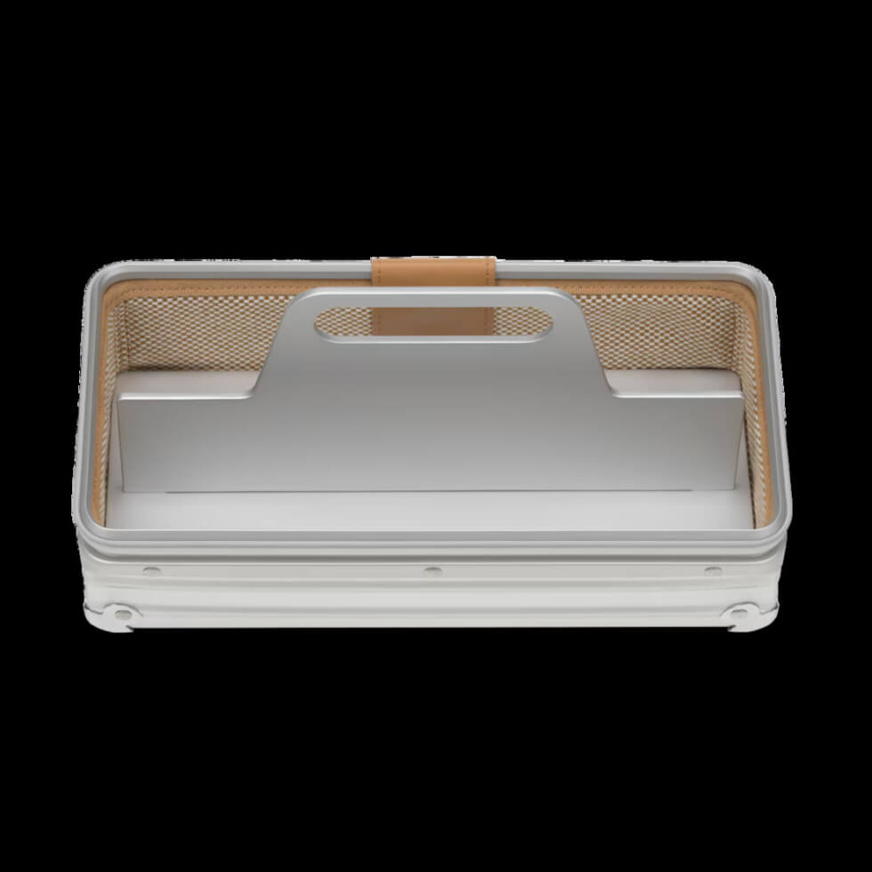 The upgraded version swapped out the original recycled plastic shell for RIMOWA’s iconic anodized aluminum. The construction borrows from the grooved aluminum shell inherent of the German brand’s suitcase design. The carrying handle is also crafted using aluminum and the recycled lining pays homage to the product’s sustainable beginnings.