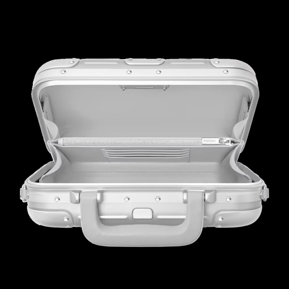 The RIMOWA Original Bag offers three ways of carry. It has a sturdy grab handle so you can carry it like a handbag. Then there’s the adjustable and removable webbing strap that lets you slung the bag across the body or over the shoulder for hands-free carry. It offers spacious space for your everyday essentials and secures them inside with a RIMOWA-pioneered button mechanism.