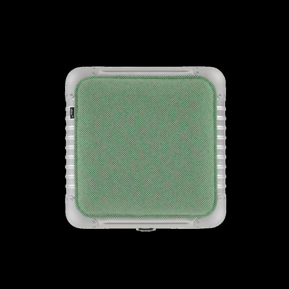 The lid stays shut via a smooth cowhide Premium F leather puller that seamlessly slides into the aluminum hook. The lid also comes with a snap-on cushion created with Vitra’s environmentally-friendly fabric, Laser RE. The distinctive woven fabric, made with 100% polyester, is abrasion resistant and easy to clean. The same fabric also makes up the interior upholstery of the Aluminum Stool.