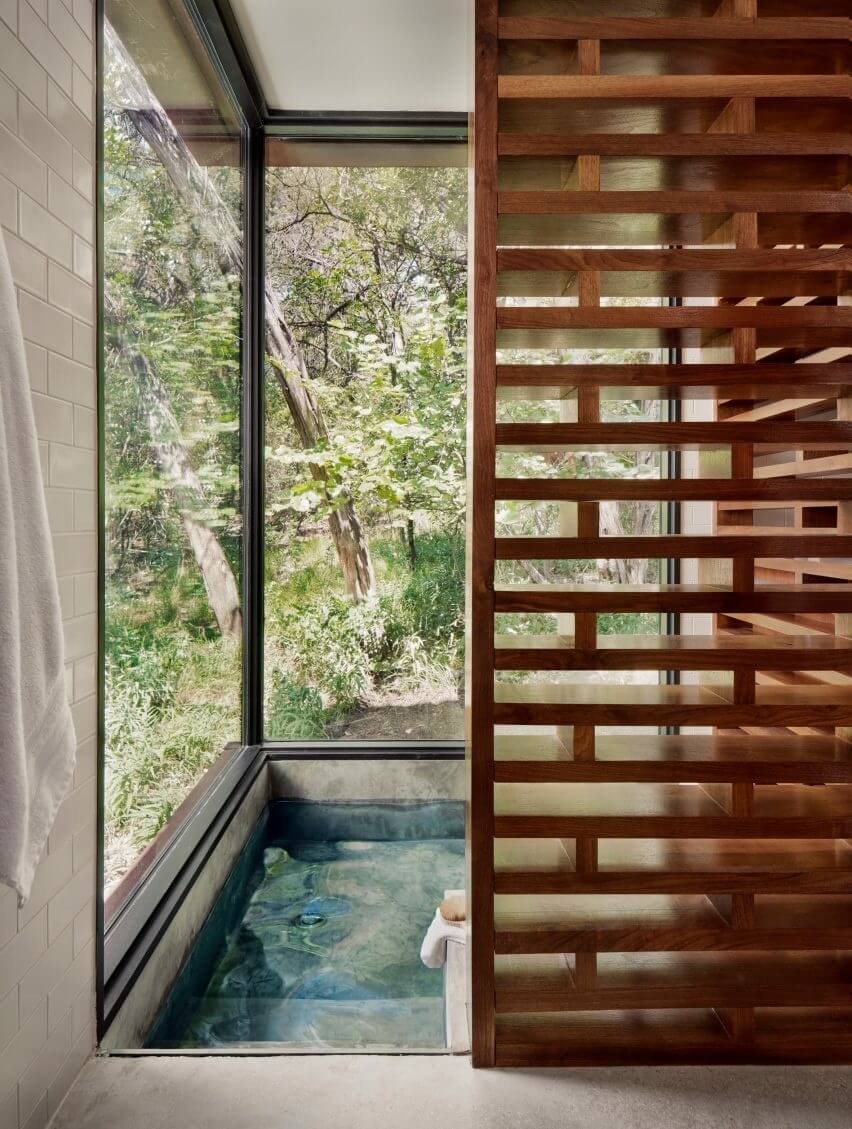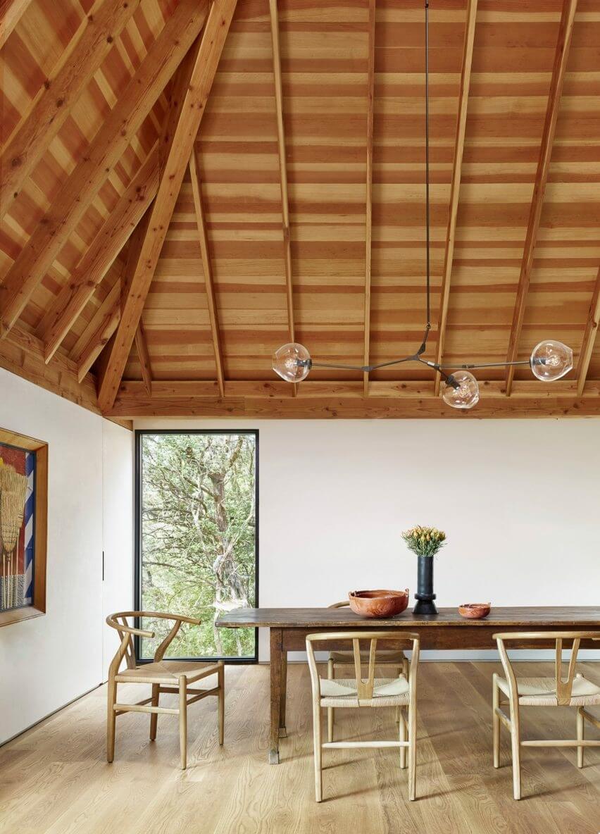 The detached buildings house a carport and an art studio with the latter also doubling as a guest room. “Only the back third of the buildings on the sloping portion of the site sit on grade, and these areas were carefully located to minimize the number of trees that needed to be removed in construction,” the team said revealing that only six trees were removed to build all four structures of the River Bend Residence out of respect for the abundant wildlife habitat in the area.