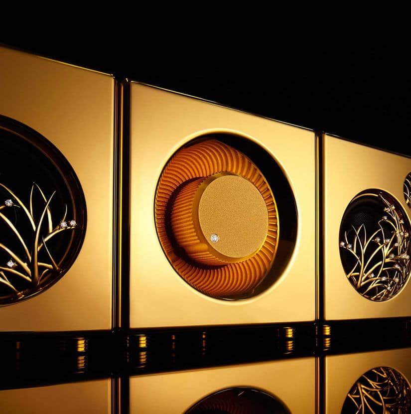 The use of solid gold for the body may seem like a bit of an overdo, but the choice is actually a perfectly justifiable engineering choice. The expensive material ensures unparalleled sound clarity by lending remarkably low “longitudinal elastic modulus/density” to the speakers.