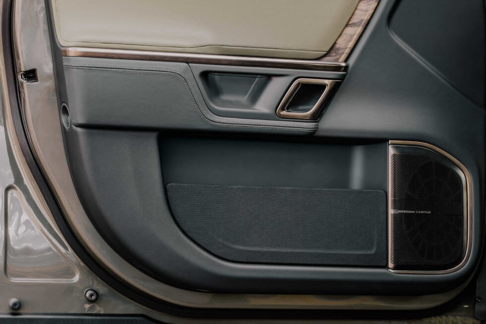 The R1S is available in various colorways. Step inside the cozy cabin which features a panoramic all-glass roof. The interior features wood trim, vegan leather, a Rivian Elevation sound system by Meridian, and even a removable Bluetooth Speaker. This is one of the best electric SUVs on the market right now.