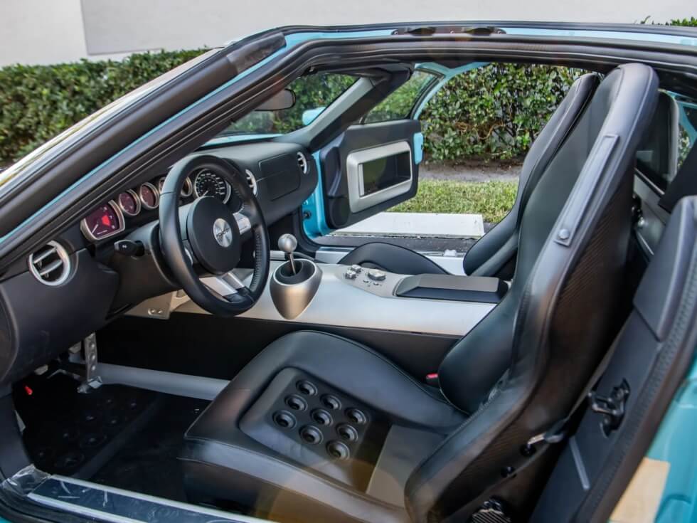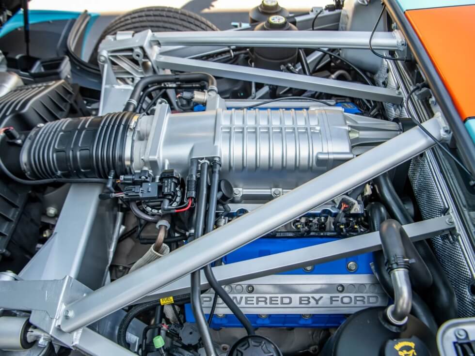 Under the hood is a 5.4-liter DOHC V-8 engine with a Lysholm twin-screw supercharger. The 2006 Ford GT Heritage Edition produces 550 horsepower and 500 lb-ft of torque. Its mill is matched to a Ricardo six-speed manual gearbox. Finally, testing shows a top speed of 205 mph and a zero-to-60 mph acceleration of 3.3 seconds.