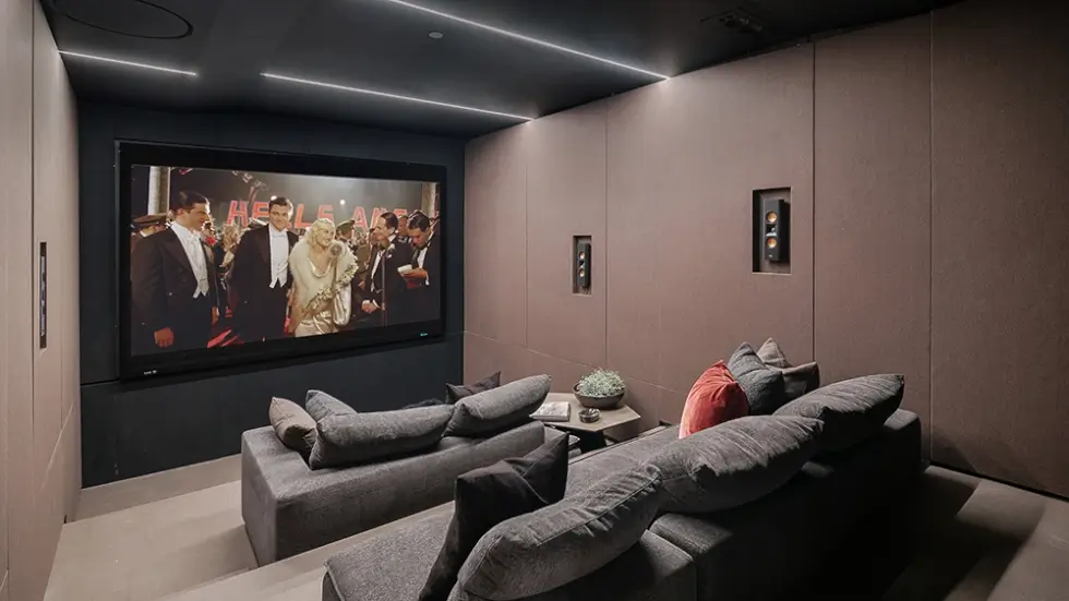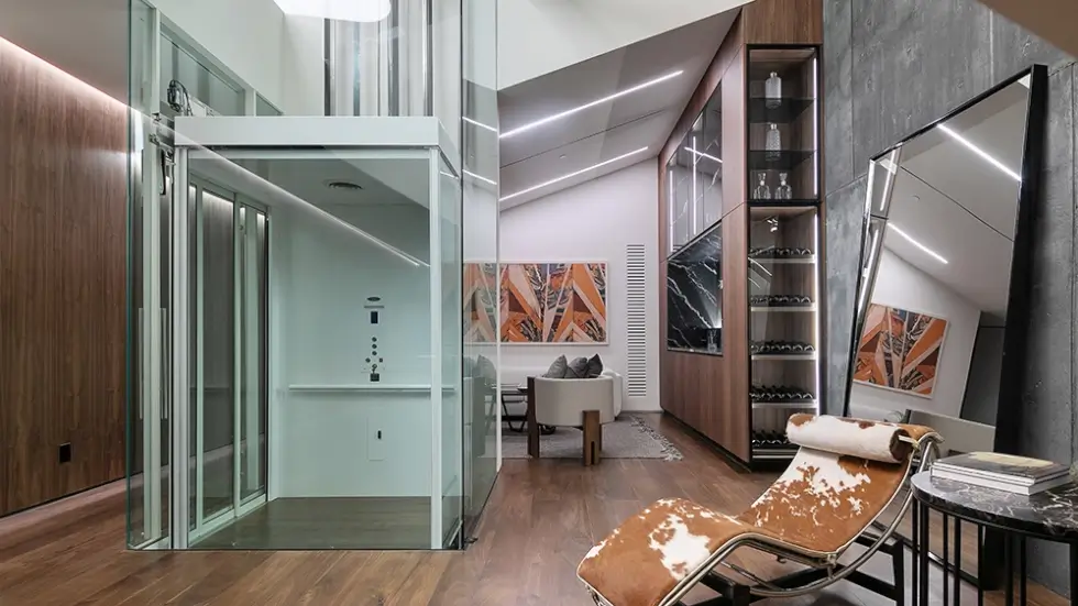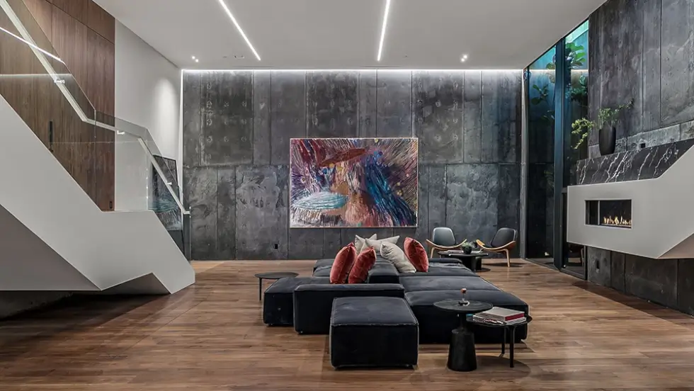 The roof of the Roberto Lane Manse has a recessed space for solar panels along with areas to put high-efficiency HVAC systems, and smart home keypads and devices. Meanwhile, minimal linear and pinhole LED lighting creates an ambient atmosphere all throughout.
