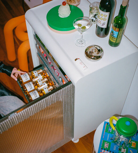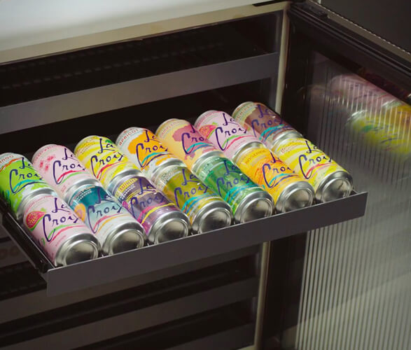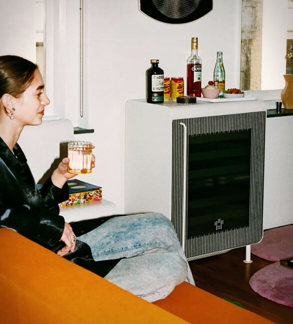 This mini fridge stores drinks of all kinds and uses the same compression tech as sub-zero compressor for maximum power at ultra-quiet refrigeration. It has unique isolated temperature zones for ultimate control and reversible and modular racks that can fit every bottle, box, and can. It can store 27 Bordeaux bottles, 88 cans, or a variety of both.
