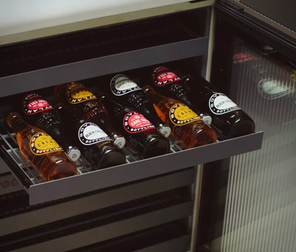 The Rocco Super Smart Fridge has four cooling modes for a range of beverages and has 100% extension racks that pull completely out of the fridge so you can access everything even those stored at the back. Whereas, a multifunctional top serves as space for extra bottles and comes with a serving tray to mix and serve drinks.