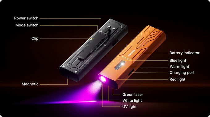 Then the UV light is handy for several purposes, including verifying legitimacy of banknotes and revealing stains invisible to the naked eye. The warm white light with a 4000K color temperature sits perfectly between warm white (3000K) and cool white (5000K). It’s comfortable to the eyes, delivering a soft glow ideal for ambient lighting, reading, or sleeping.