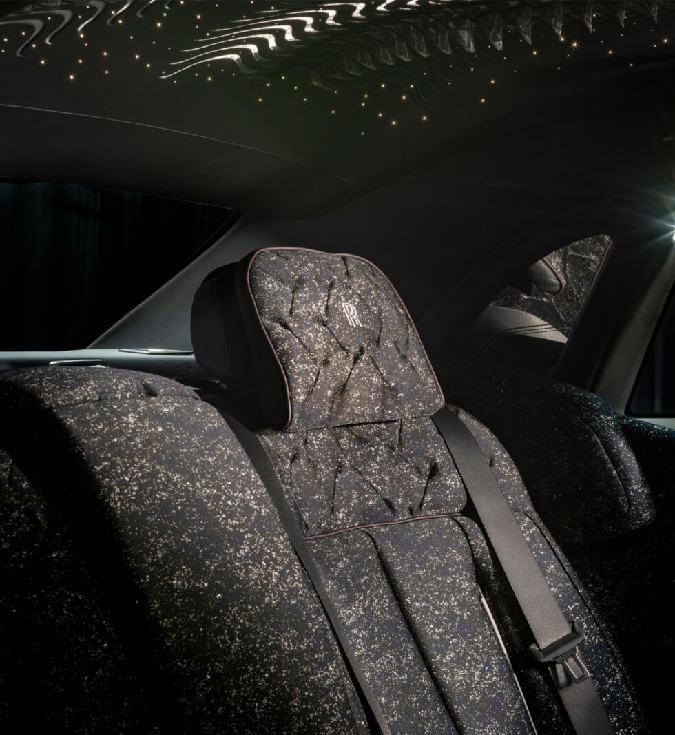 A closeup inspection of the vehicle reveals sophisticated elements to make it stand out from the standard model. Take for example the headliner crafted from a single roll of leather. There are a total of 995 fiber optic units and 162 glass organza petals. The illuminated atmosphere it creates inside the cabin is surreal.