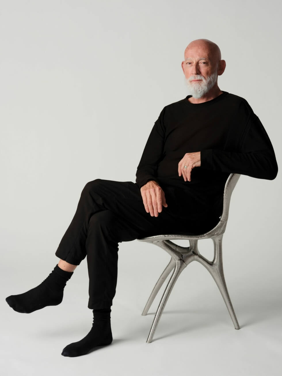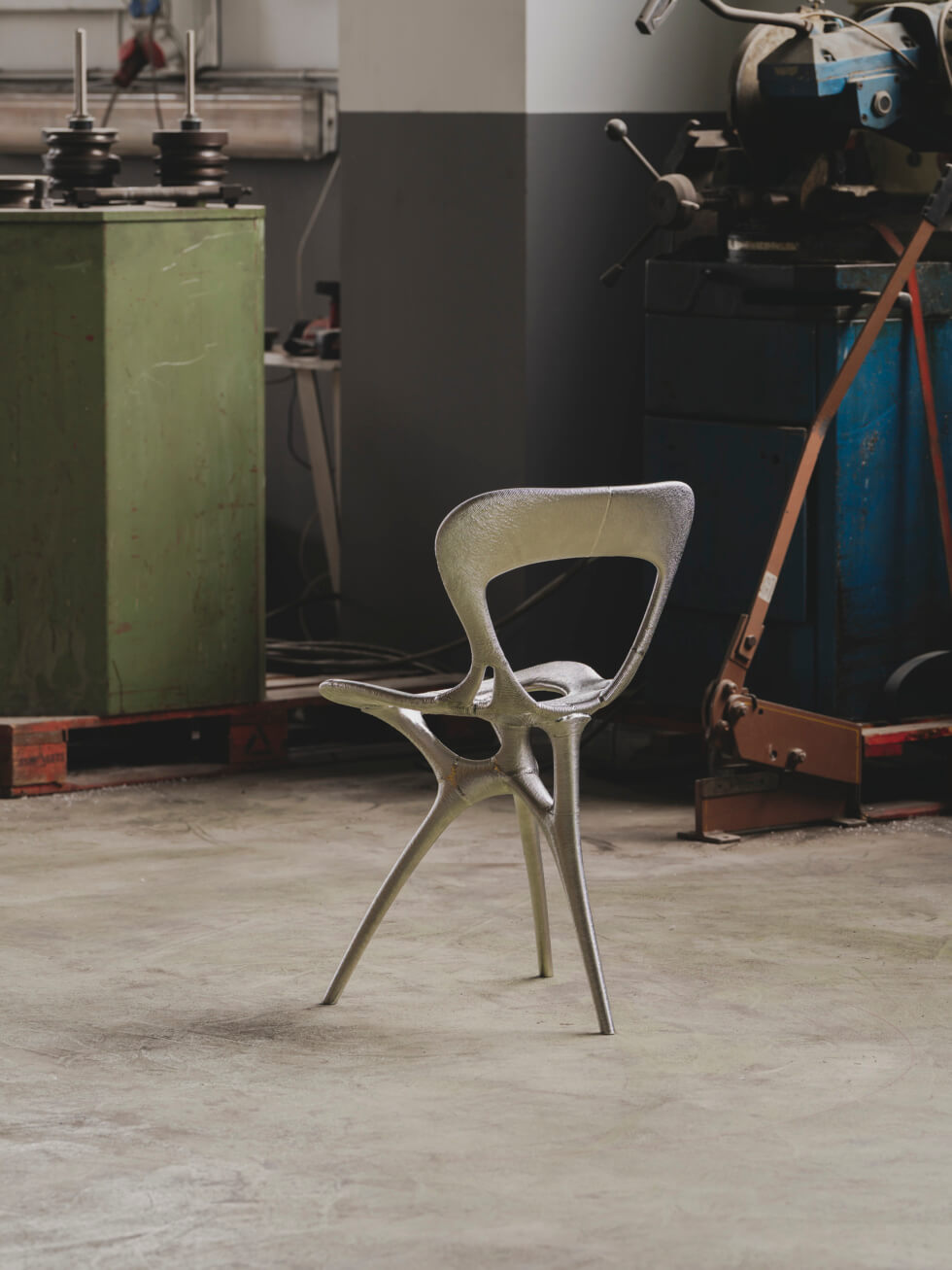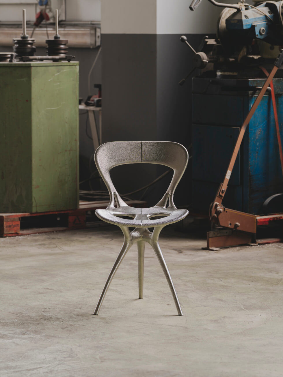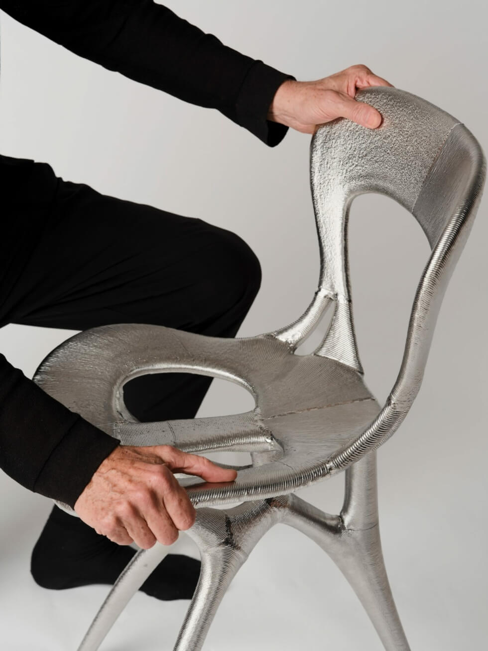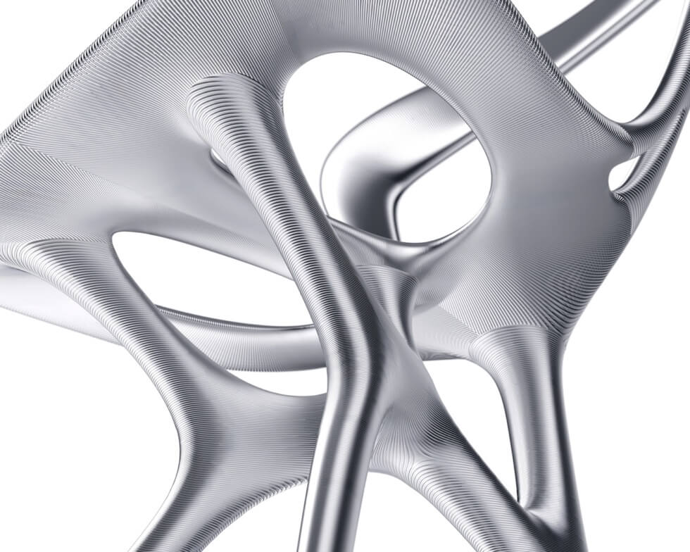 The team then sliced the model for Seed 6143 and subdivided it for direct robotic-arm 3D printing in metal. This process ensures the smallest number of connecting parts to achieve a continuous flow, inherent of Lovegrove’s signature sinuous style.