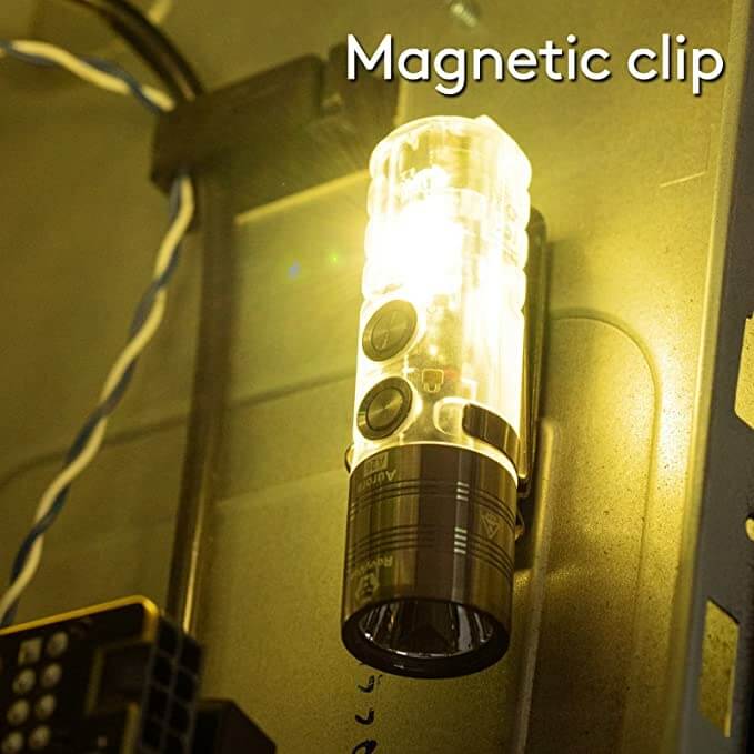 The RovyVon Aurora A26 Pocket Thrower Flashlight also features other light modes aside from Turbo. On the side, it offers three auxiliary LEDs;  4000K warm White reading light, 365nm UV black light, and 625nm Red light, which is useful for emergency situations and in protecting night vision.