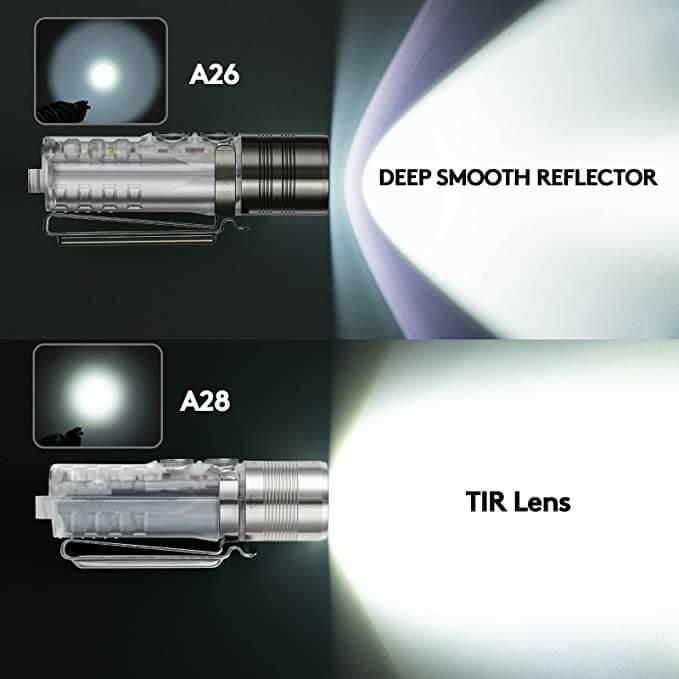 The RovyVon Aurora A26 Pocket Thrower Flashlight is the first thrower flashlight in the Aurora EDC flashlight series. It packs a primary 6500K cool white front LED at a compact size meant for pocket carry.