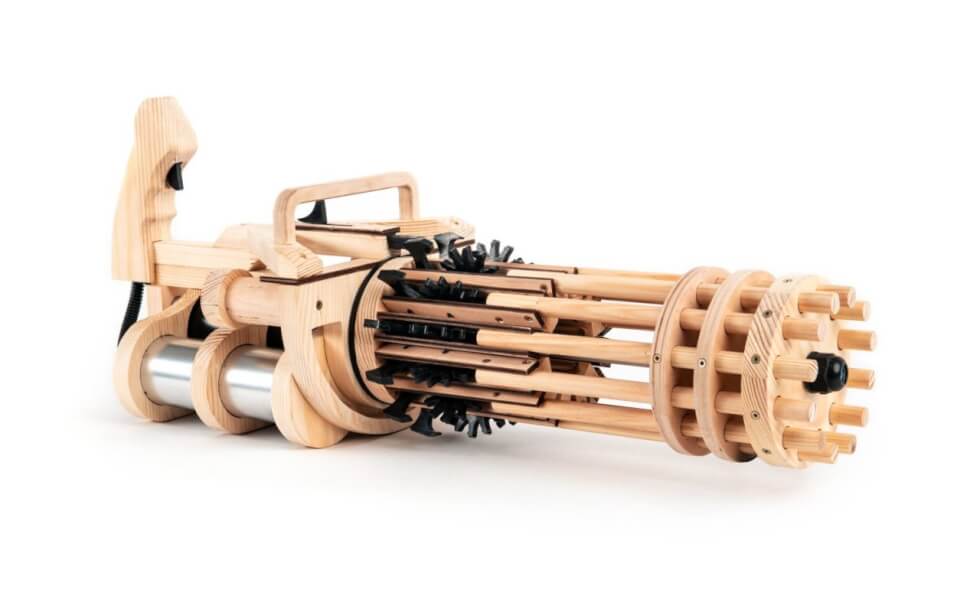 This badass toy is the upgrade we need to have in our arsenal to make our enemies cower in fear. You’ve probably seen similar concepts online, which require users to turn a crank in order to shoot. However, this one is fully automatic, which is insane. Most guys are obsessed with owning a Gatling gun for the sheer joy of firing multiple rounds in the least amount of time. Thus, this wooden replica is capable of shooting up to 144 rubber bands.