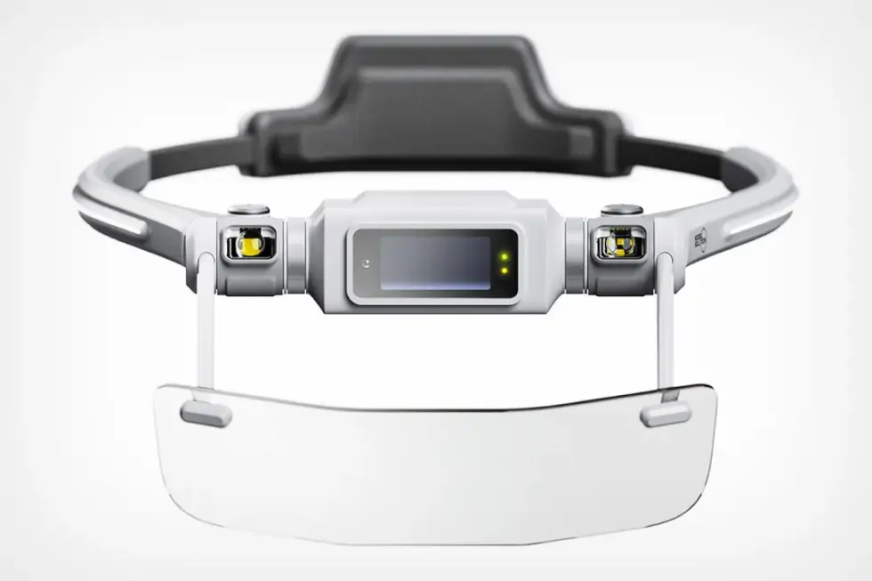 LED light strips on the sides to keep the wearer visible in low light, while two rotating flashlight modules illuminate what’s in front of them. The slim profile of the Rumen suggests it needs a separate battery pack to operate. A USB-C port on the rear of the horizontal band is perfect to keep the wires out of the way.
