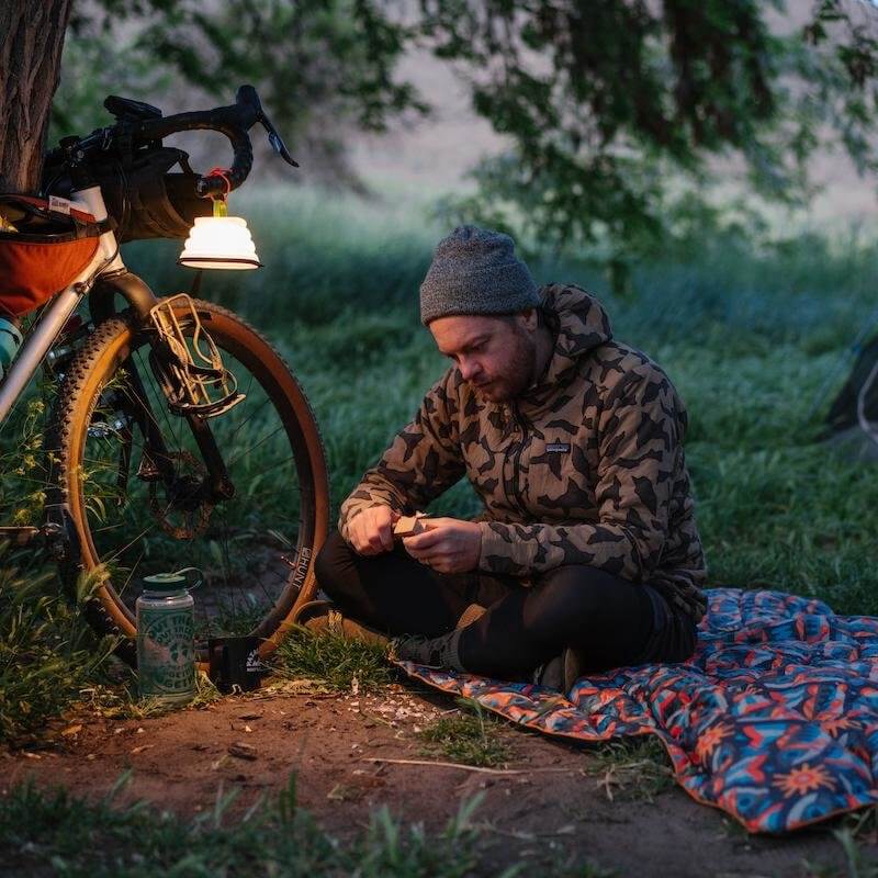A purchase of the Rumpl x Brett Stenson Fish Are Fly Puffy Blanket not only guarantees you comfort and warmth in the outdoors. You also help clean up the planet of discarded plastic bottles. In concept, 16, 60, and 100 bottles end up recycled for the junior, 1-person, and 2-person size blankets, respectively.