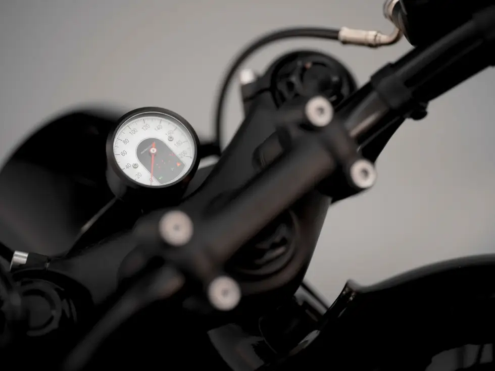 The RXV Bobber flaunts lowered handlebars, REMUS ceramic-coated stainless-steel exhausts, and a customized speedometer bracket to hold its Motogadget Motoscope Tiny, to name a few. Finally, Vagabund Moto equips the bike with 17” Takasago Excel wheels shod in Pirelli Diablo Supercorsa tires.