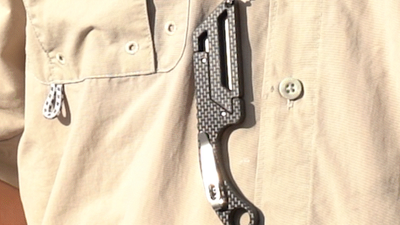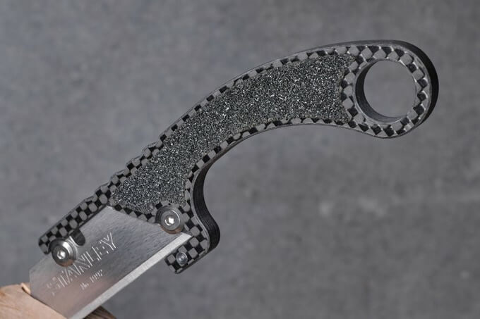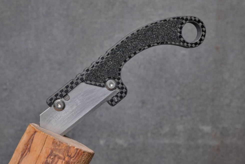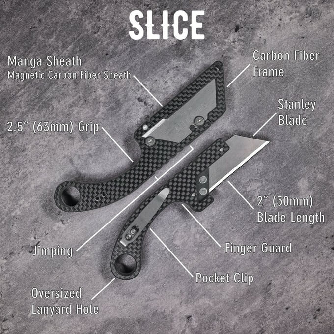 Carbon fiber is known for its lightweight strength, durability, and temperature tolerance, making it ideal for various technical and tactical applications. In this case, Ryfined Gear put carbon fiber front and center in its design for the Slice fixed blade.